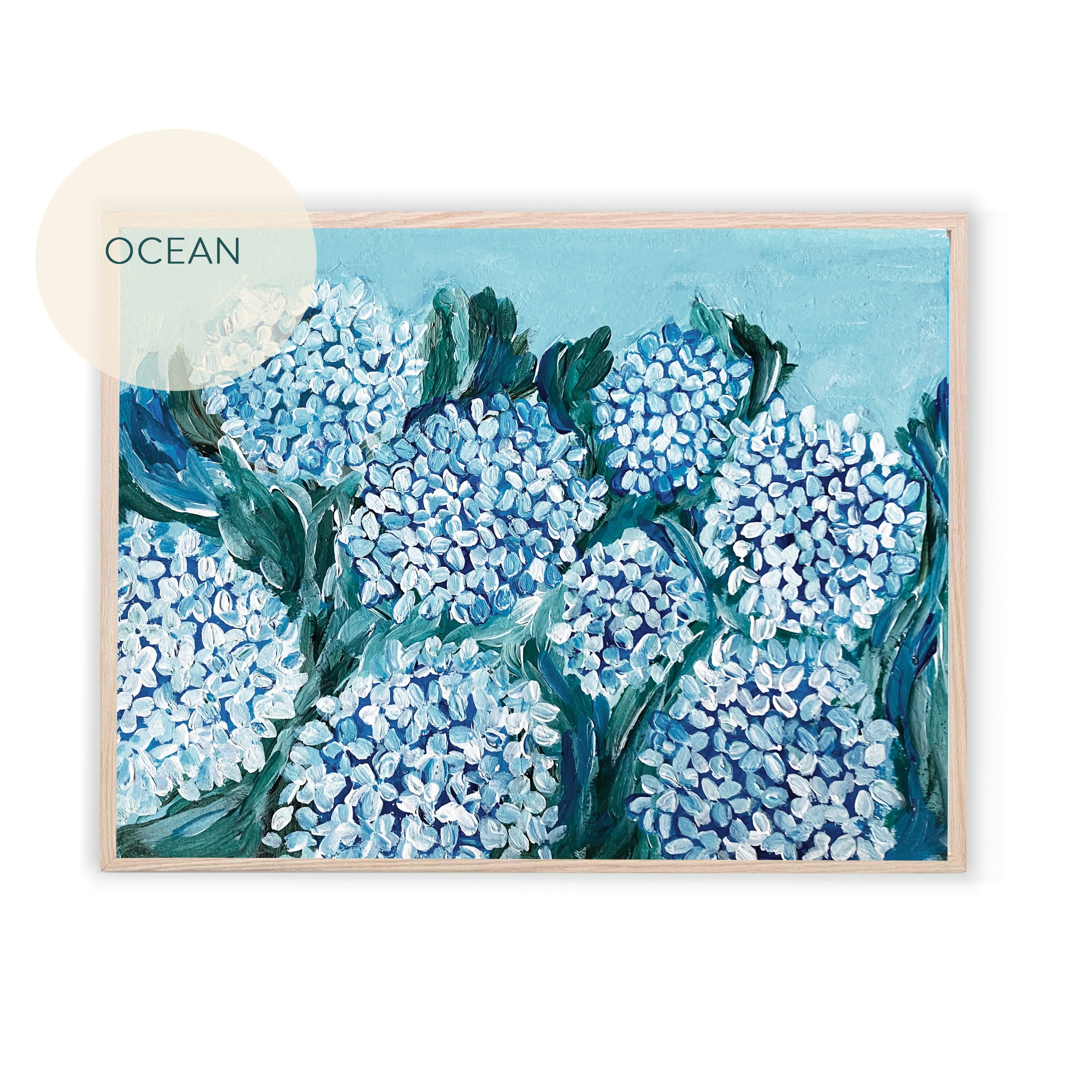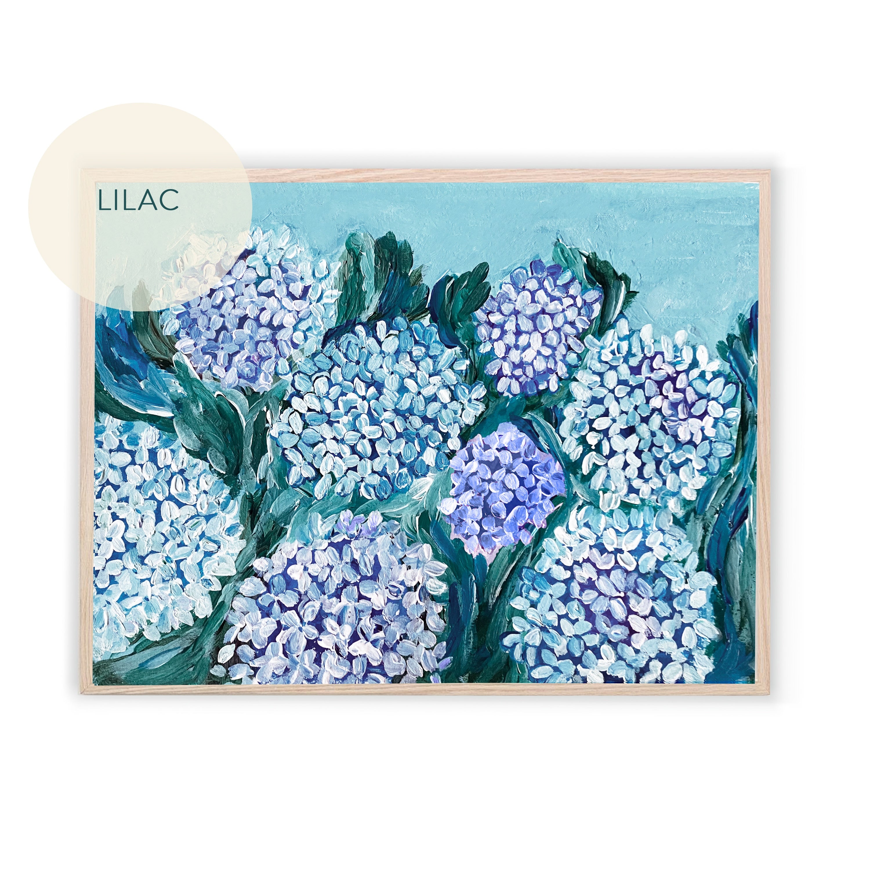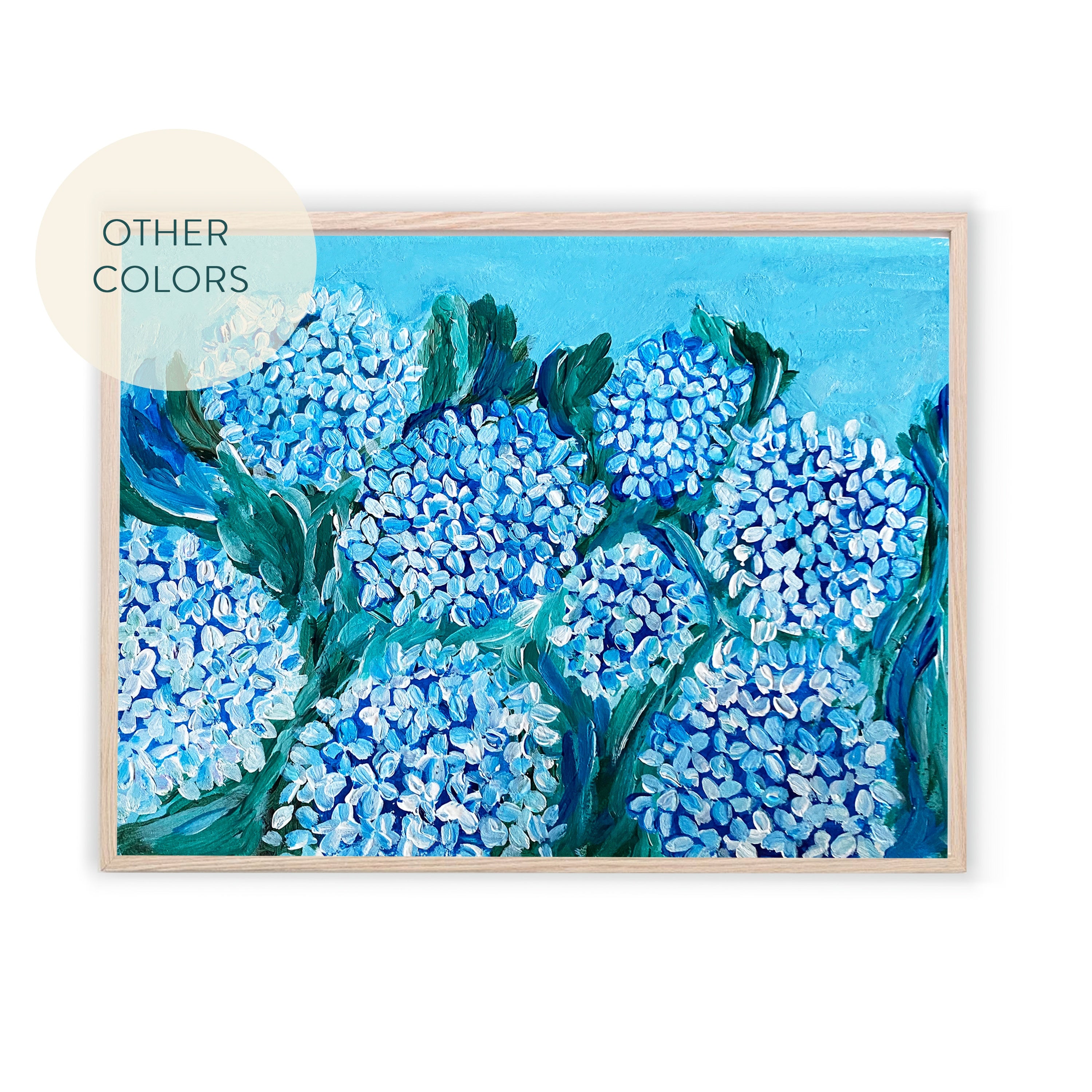 Beautiful Acrylic Hydrangea Garden painting print on canvas available in multiple colors. Choose the color that works best for your home decor.