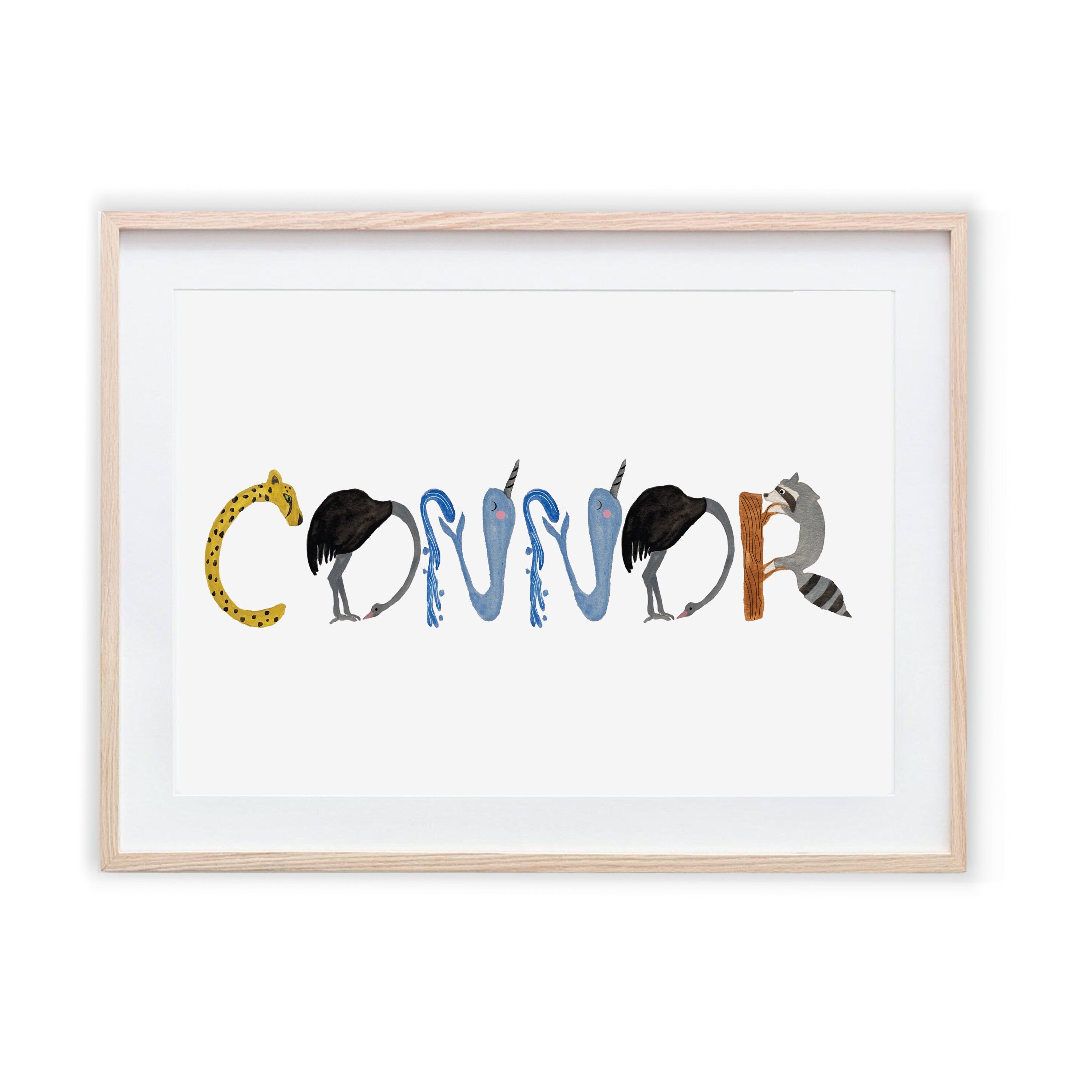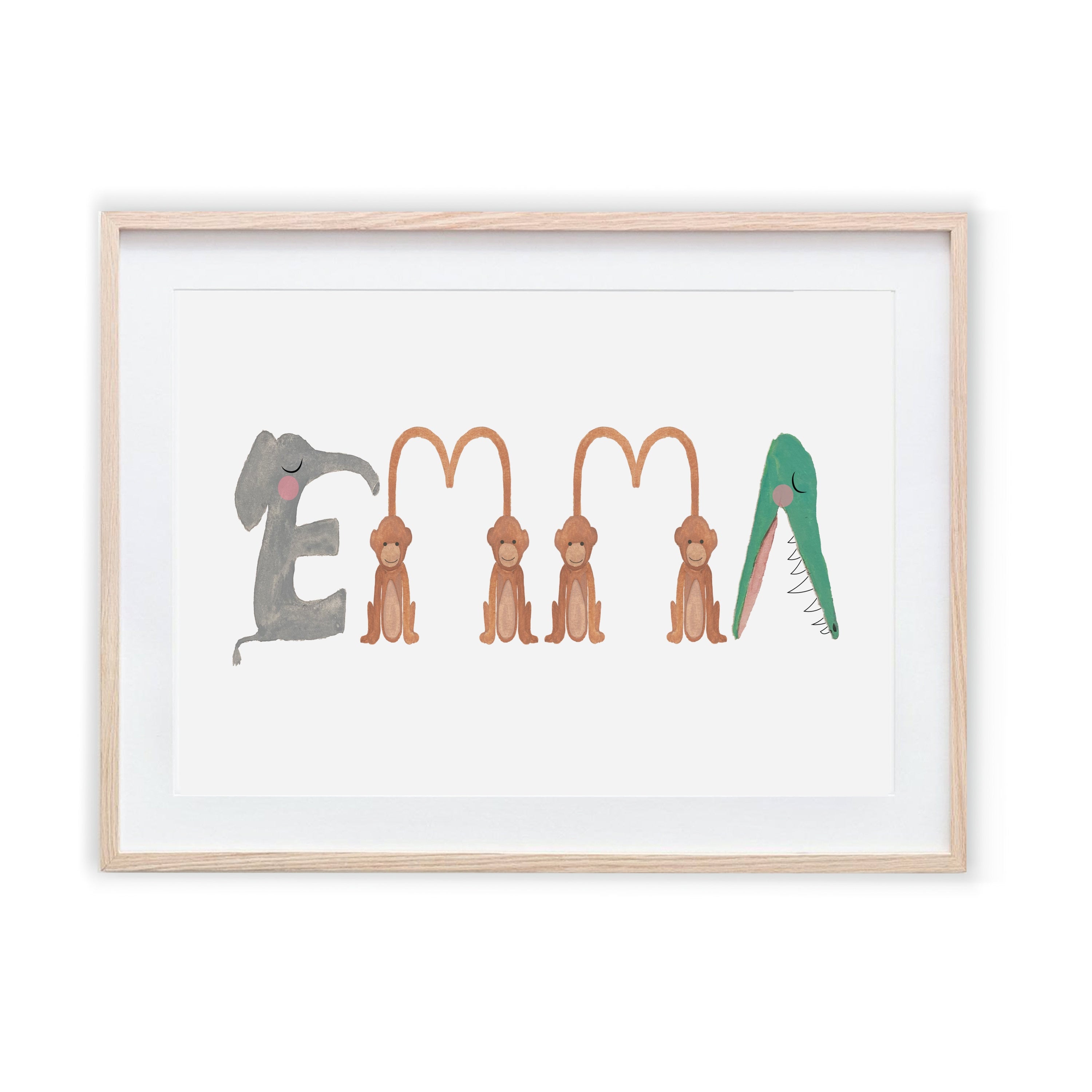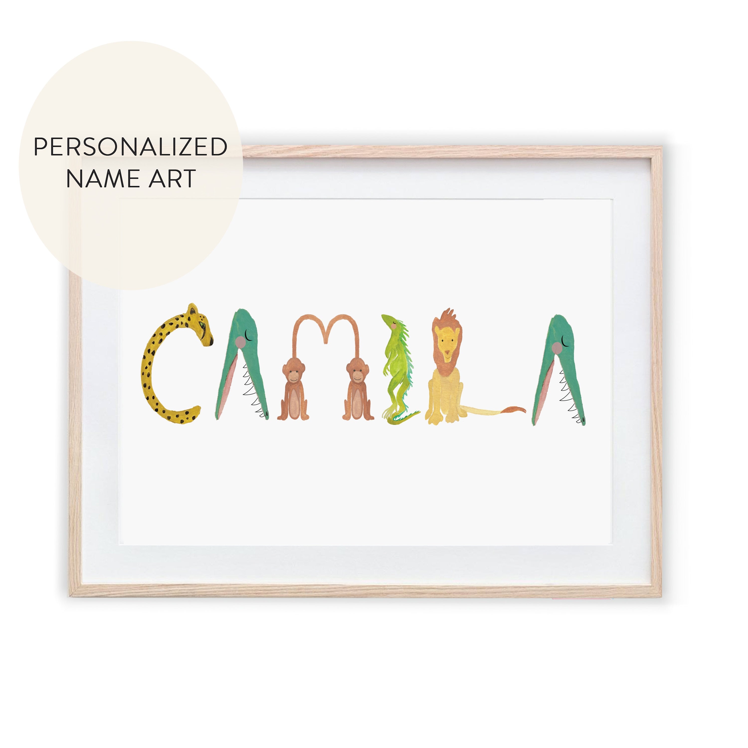Darling Animal Alphabet Letters for a Personalized Name Wall Art Each letter ties to the animal it represents: A for Alligator, C for Cheetah, K for Kangaroo. Lovely Personalized Print for your Nursery or as a gift.