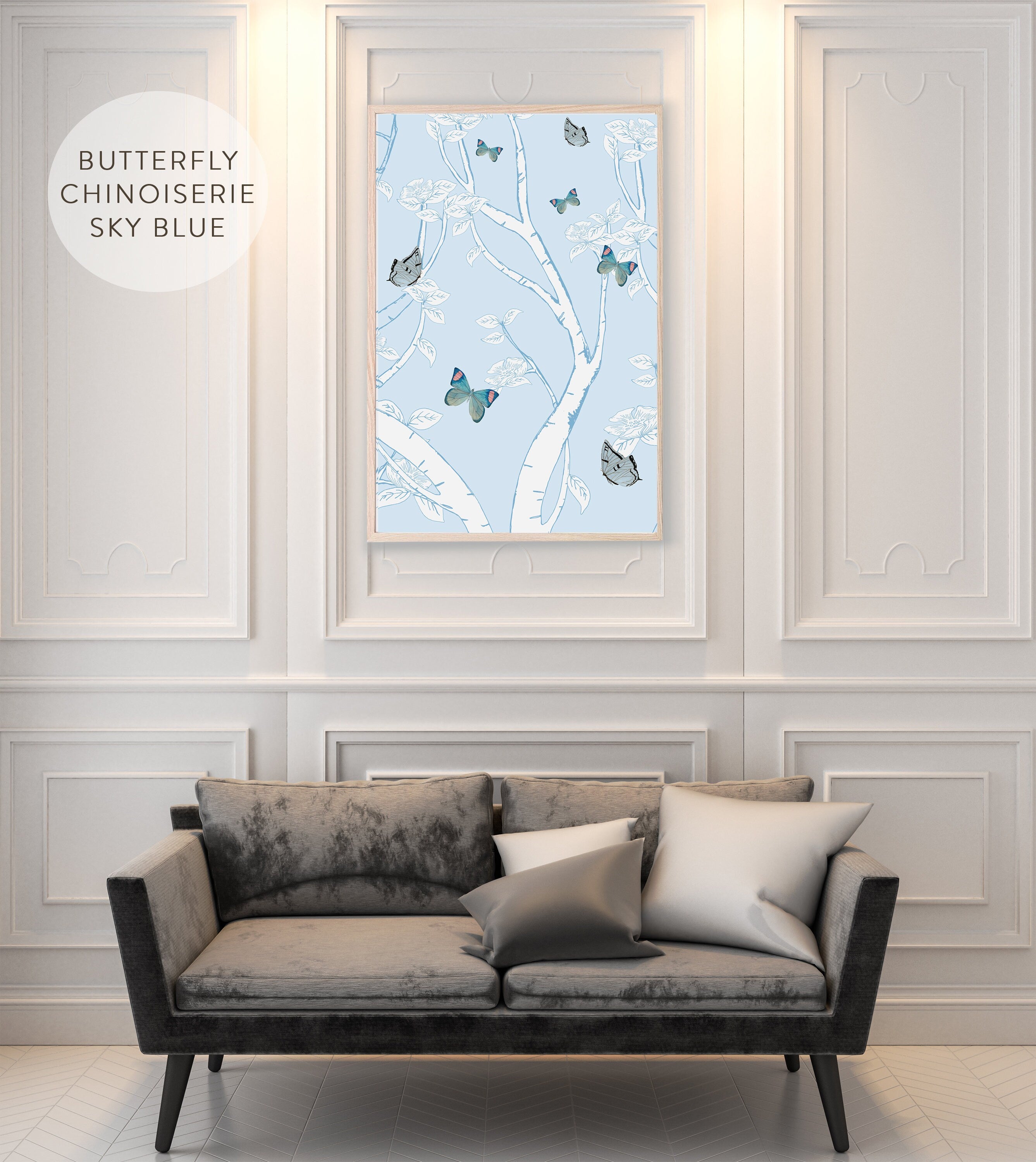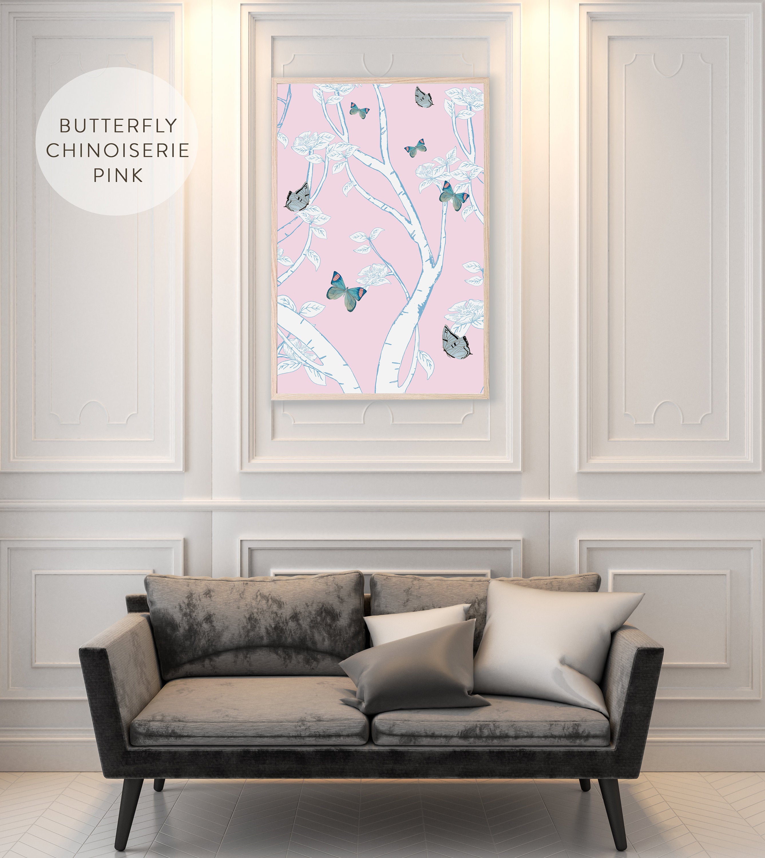 Chinoiserie Landscape Bird and Butterflies Print | Custom Color Botanical Art