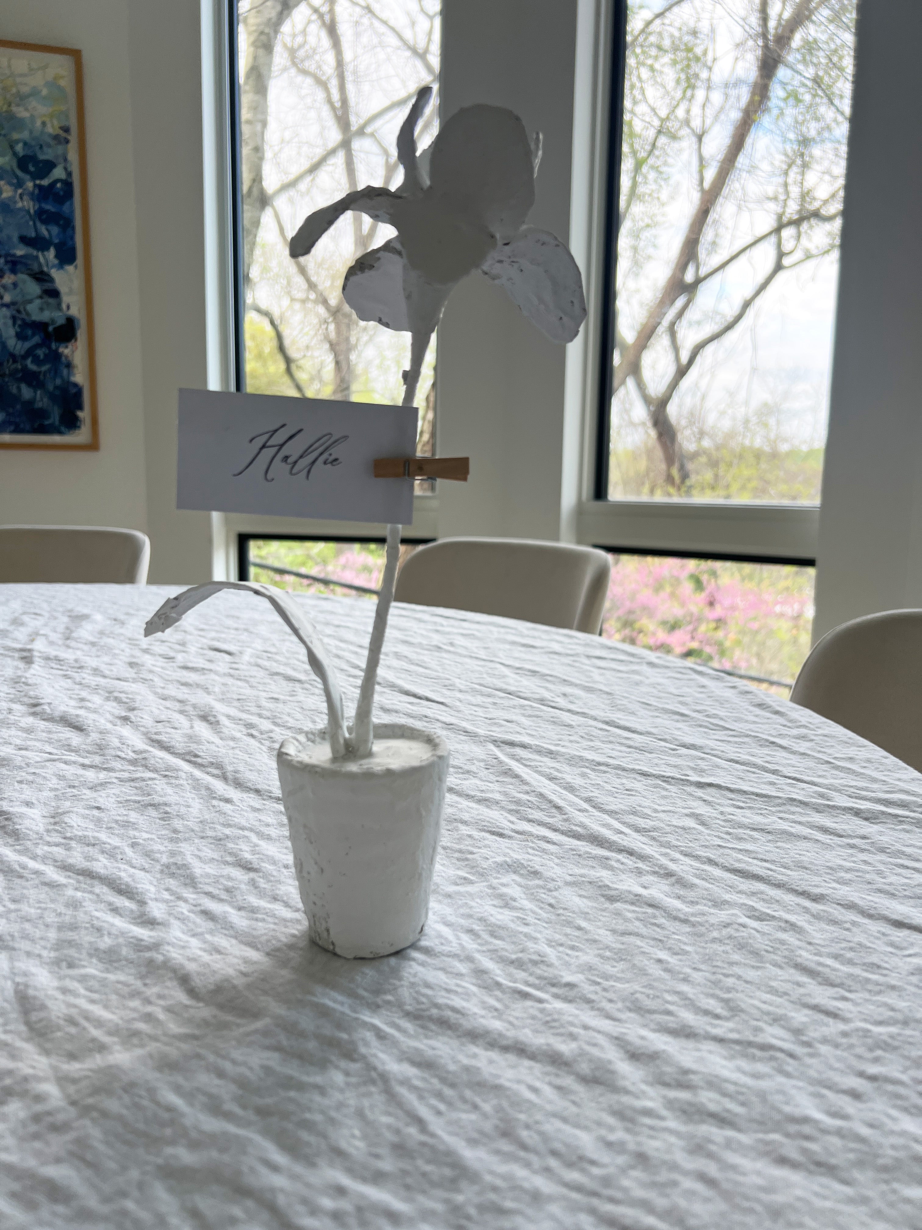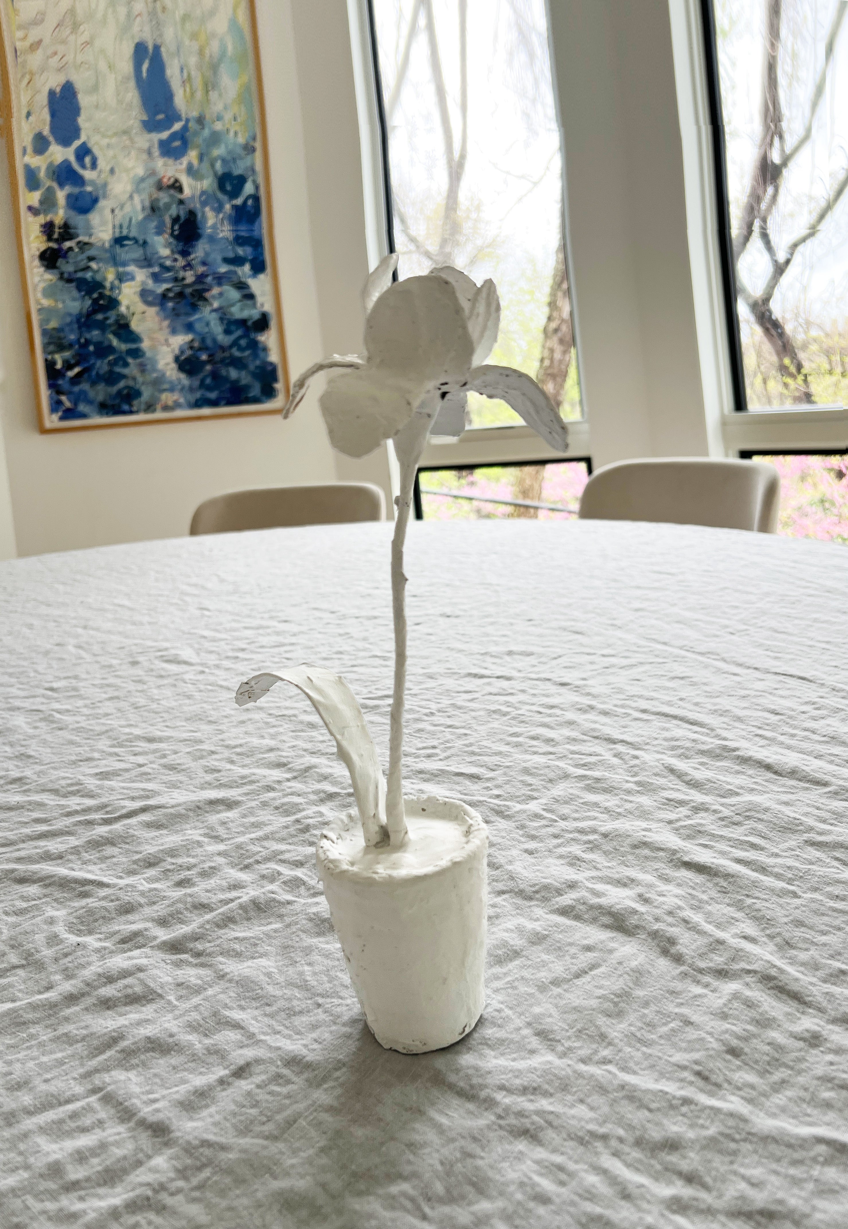 Handmade Paper Mâché & Clay Potted Iris Flower – White