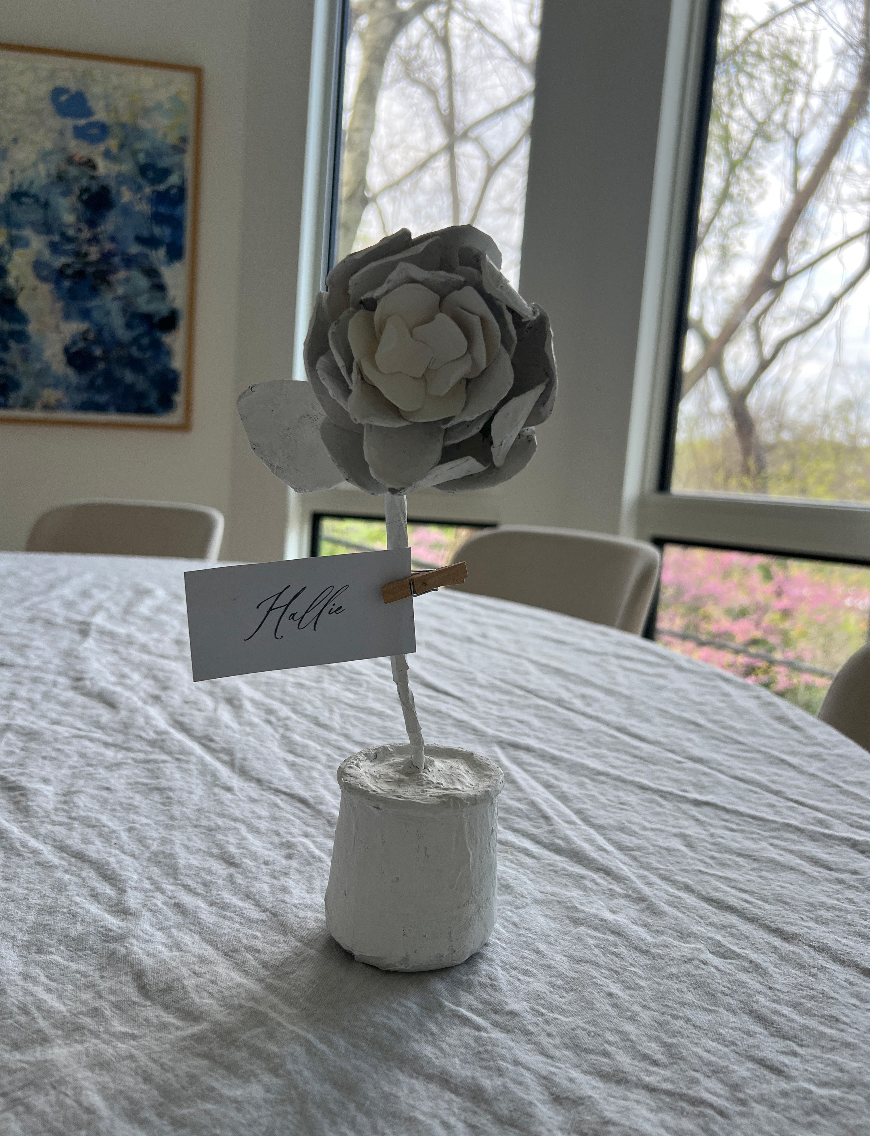 Handmade Paper Mâché & Clay Potted Peony Flower – White