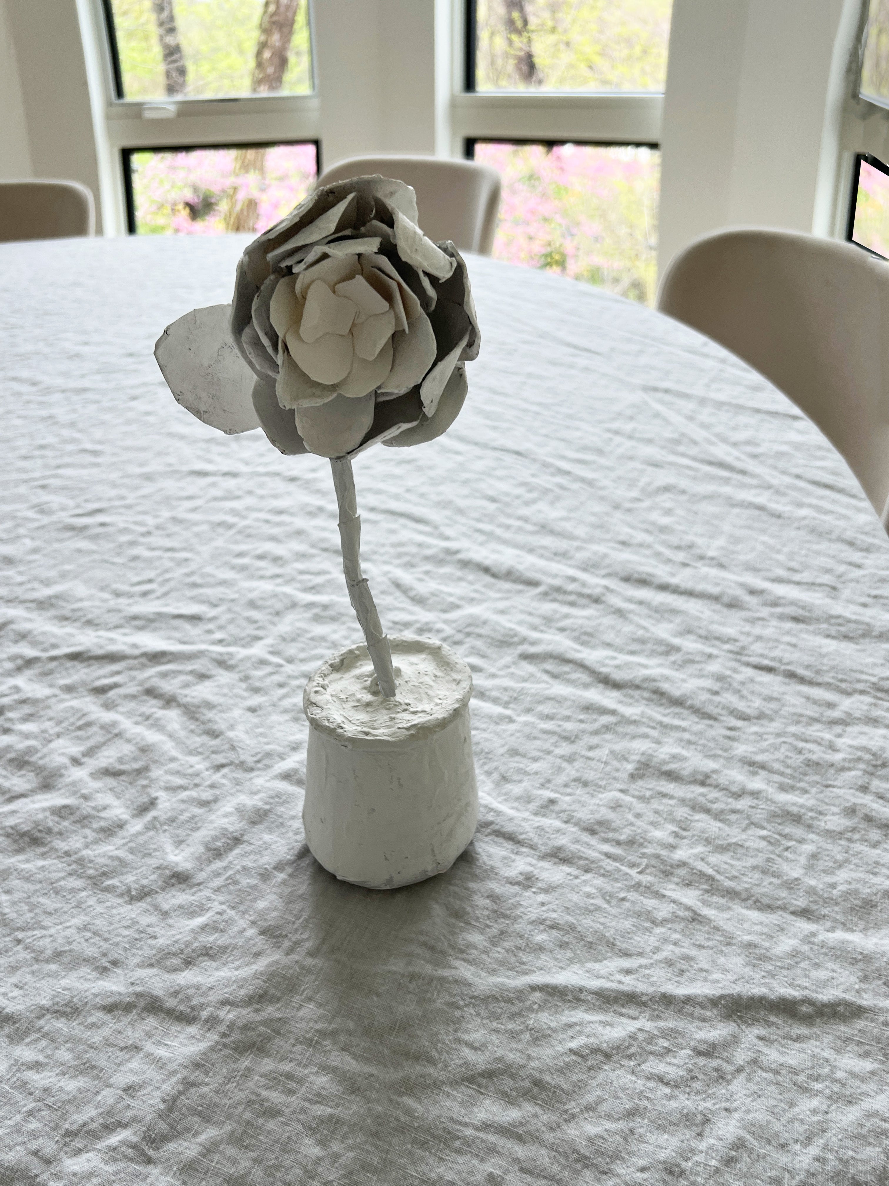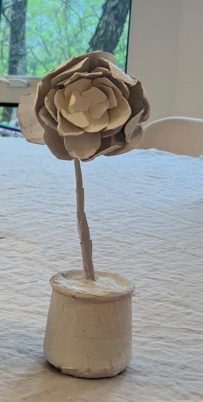 Handmade Paper Mâché & Clay Potted Large Rose Flower – White