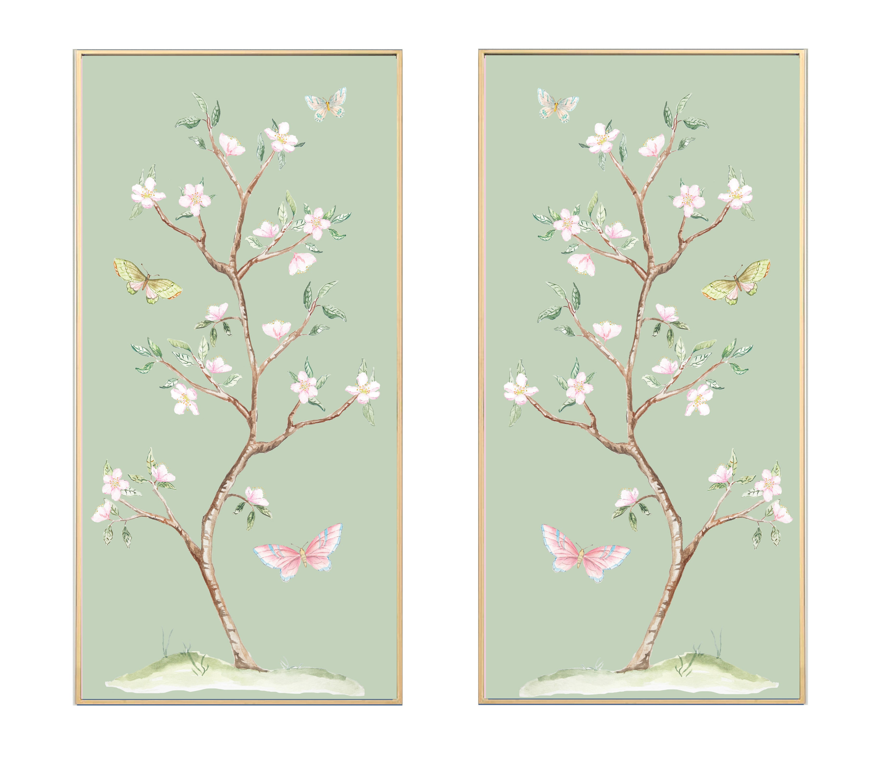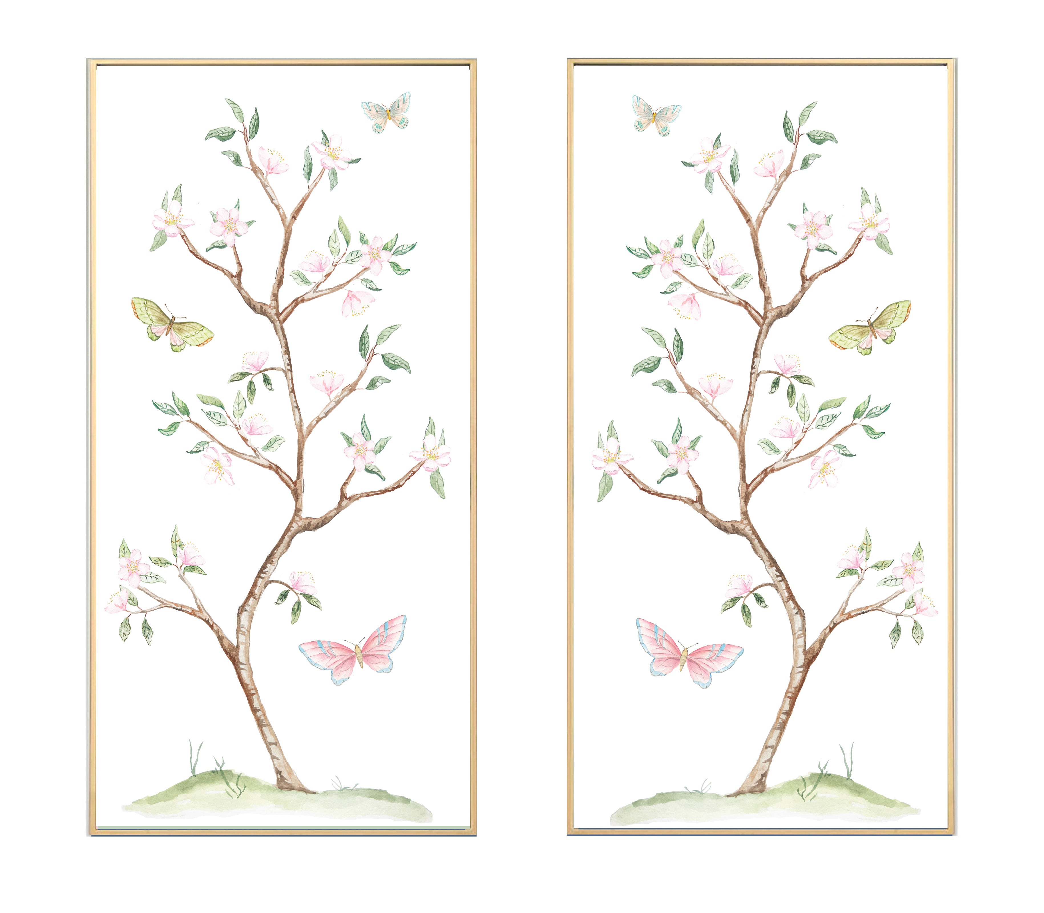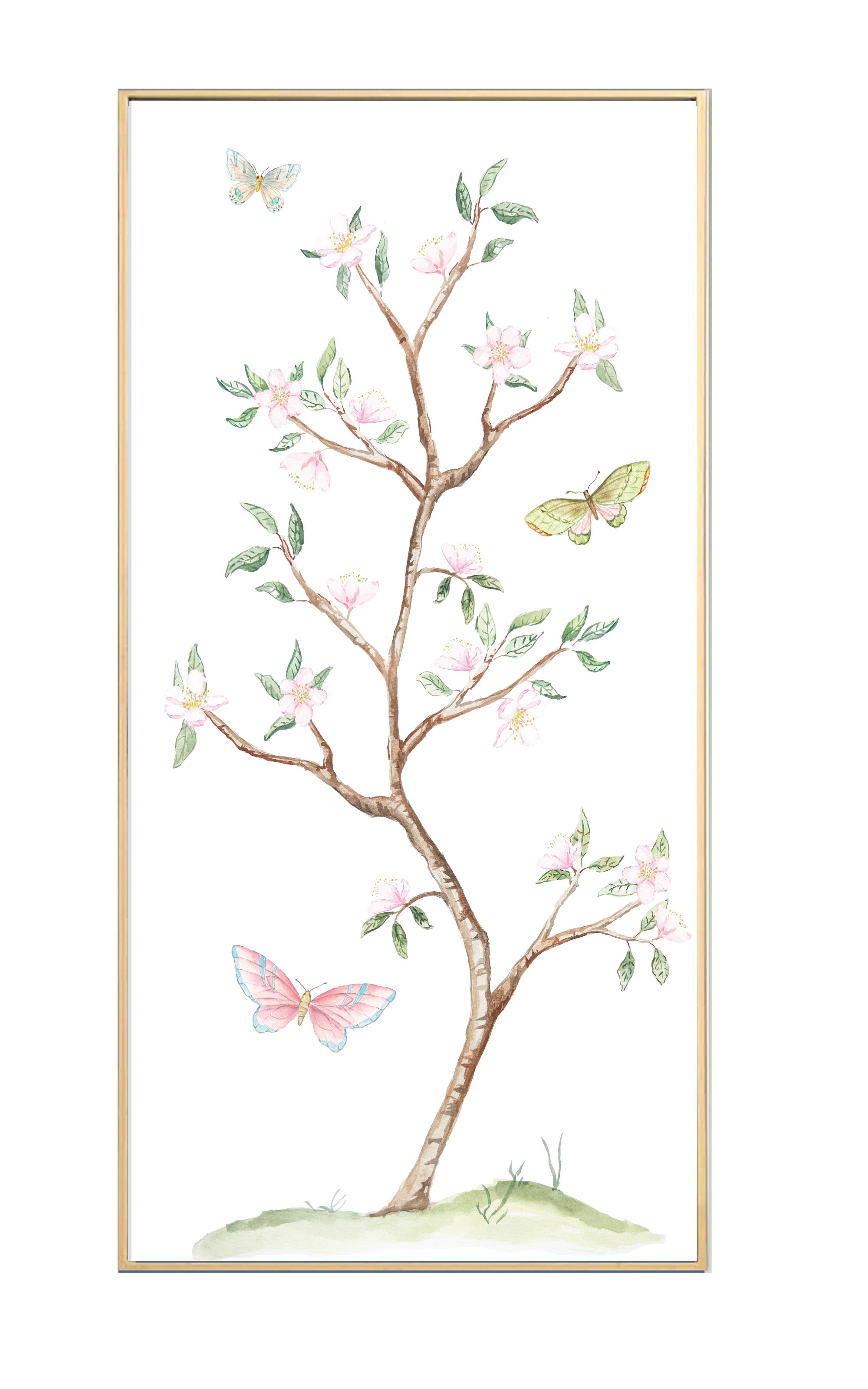 Original Tall Chinoiserie Cherry Blossom Tree Art Print