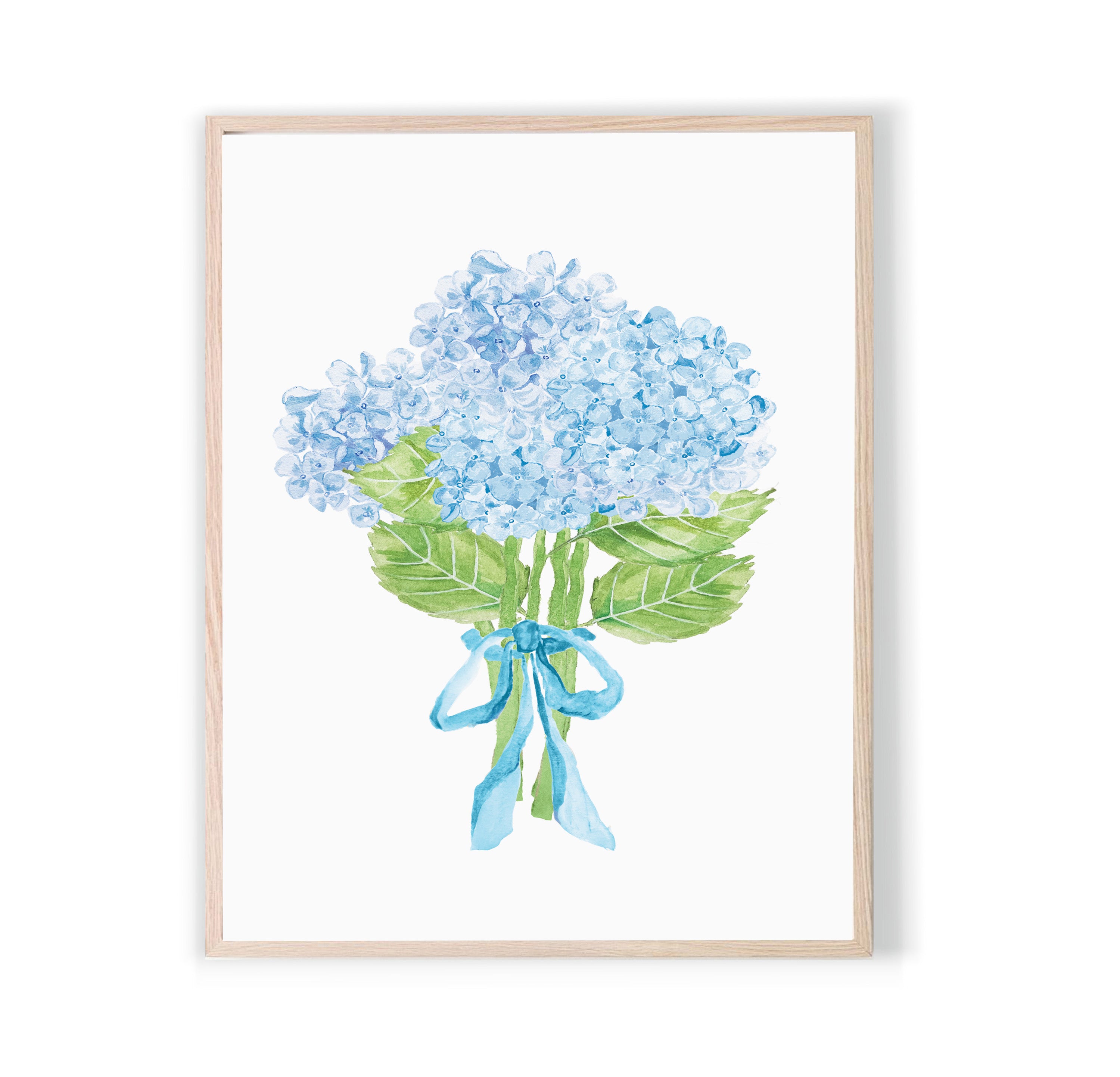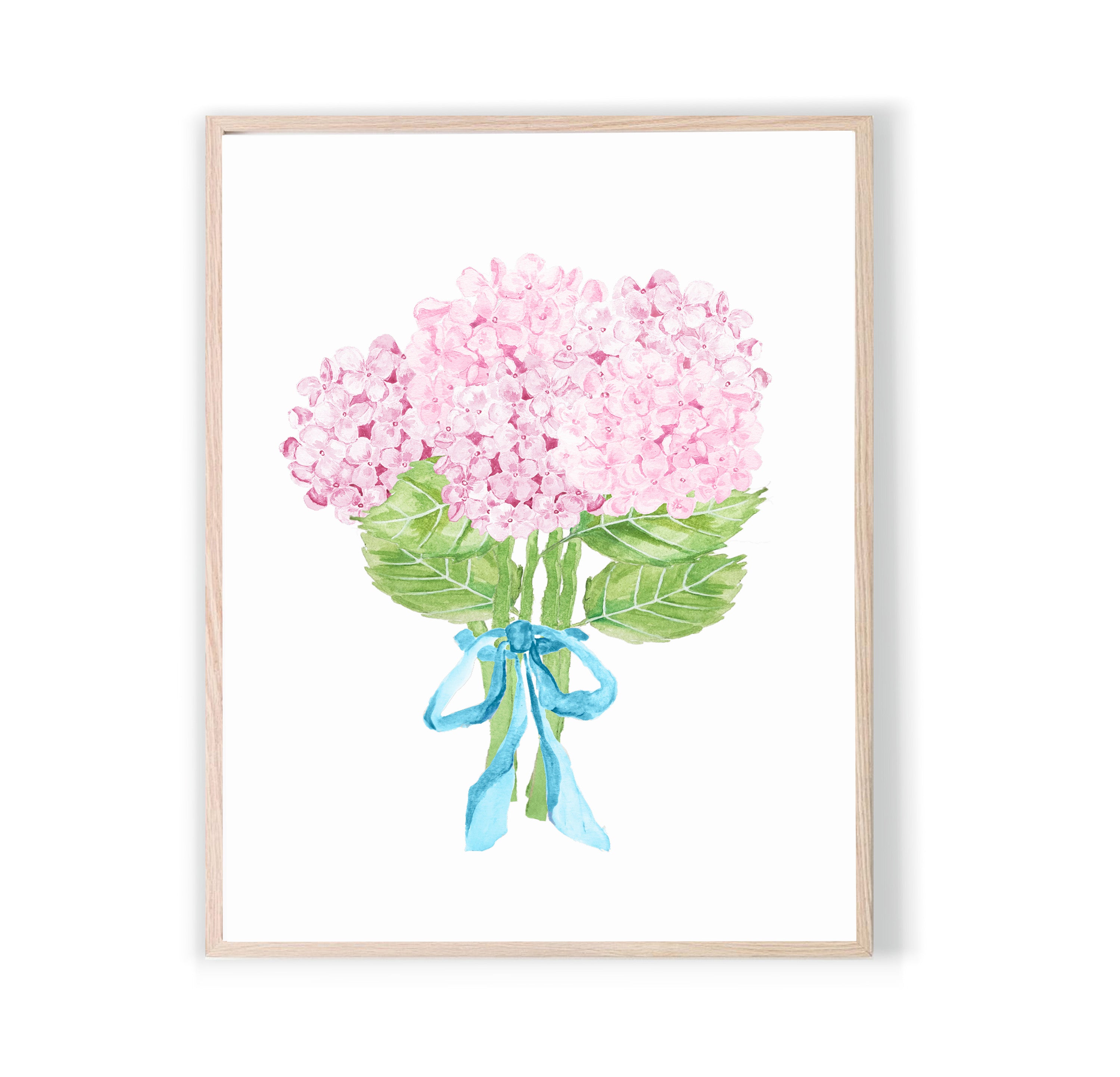 Original hydrangea bouquet and bike with hydrangeas pair Print