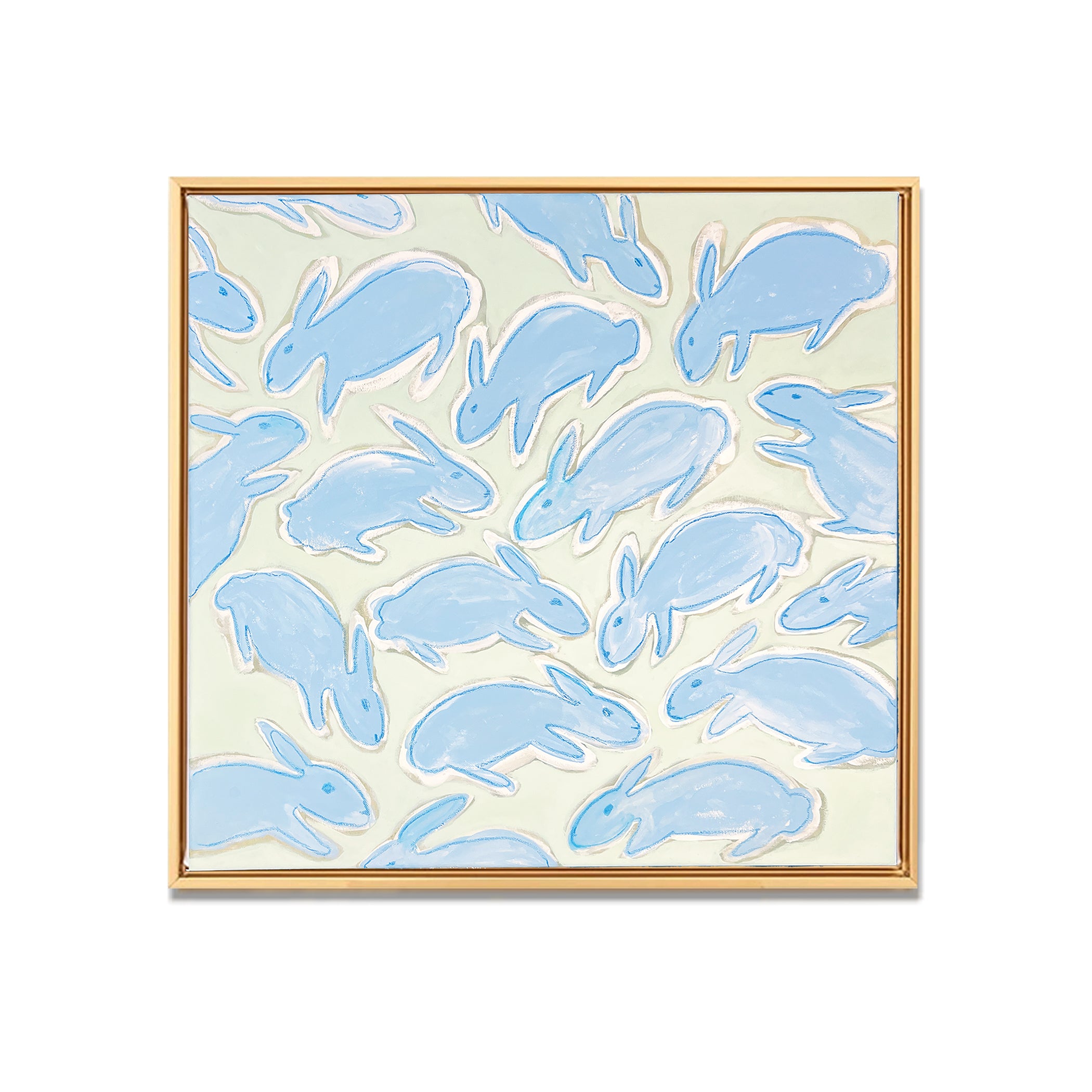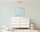 This abstract Bunny Meadow painting is the perfect addition to any nursery. The beautiful shades of green and blue brighten up any space.