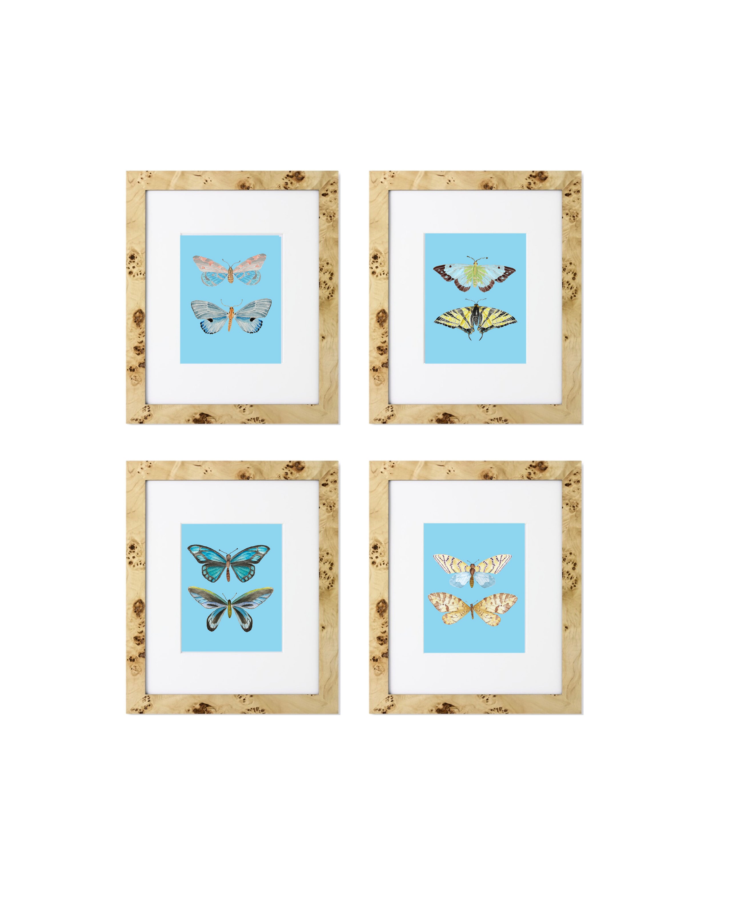 Gallery of Four Butterfly Pairs Wall Art Print | Multiple Colors | Beachy Blue