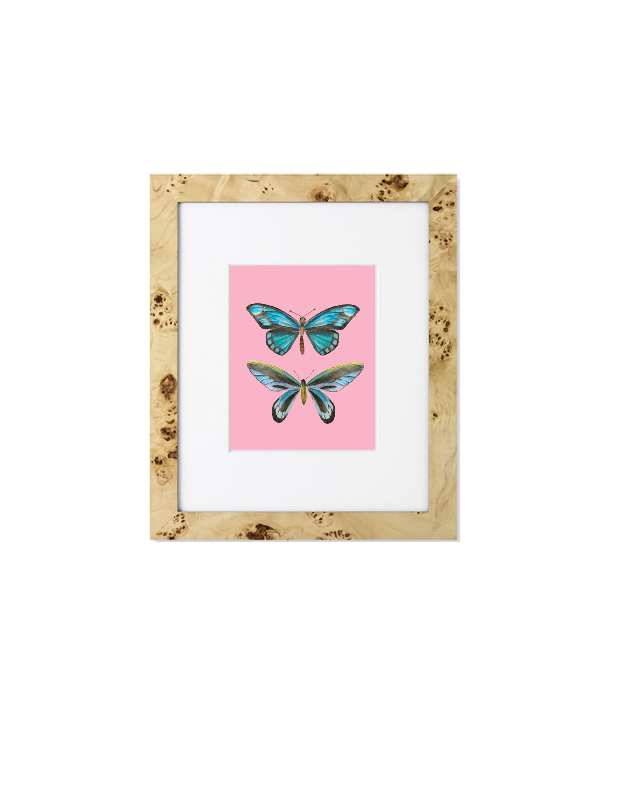 Watercolor Spotted Butterfly Pair Wall Art Print | Multiple Colors | Bubblegum Pink