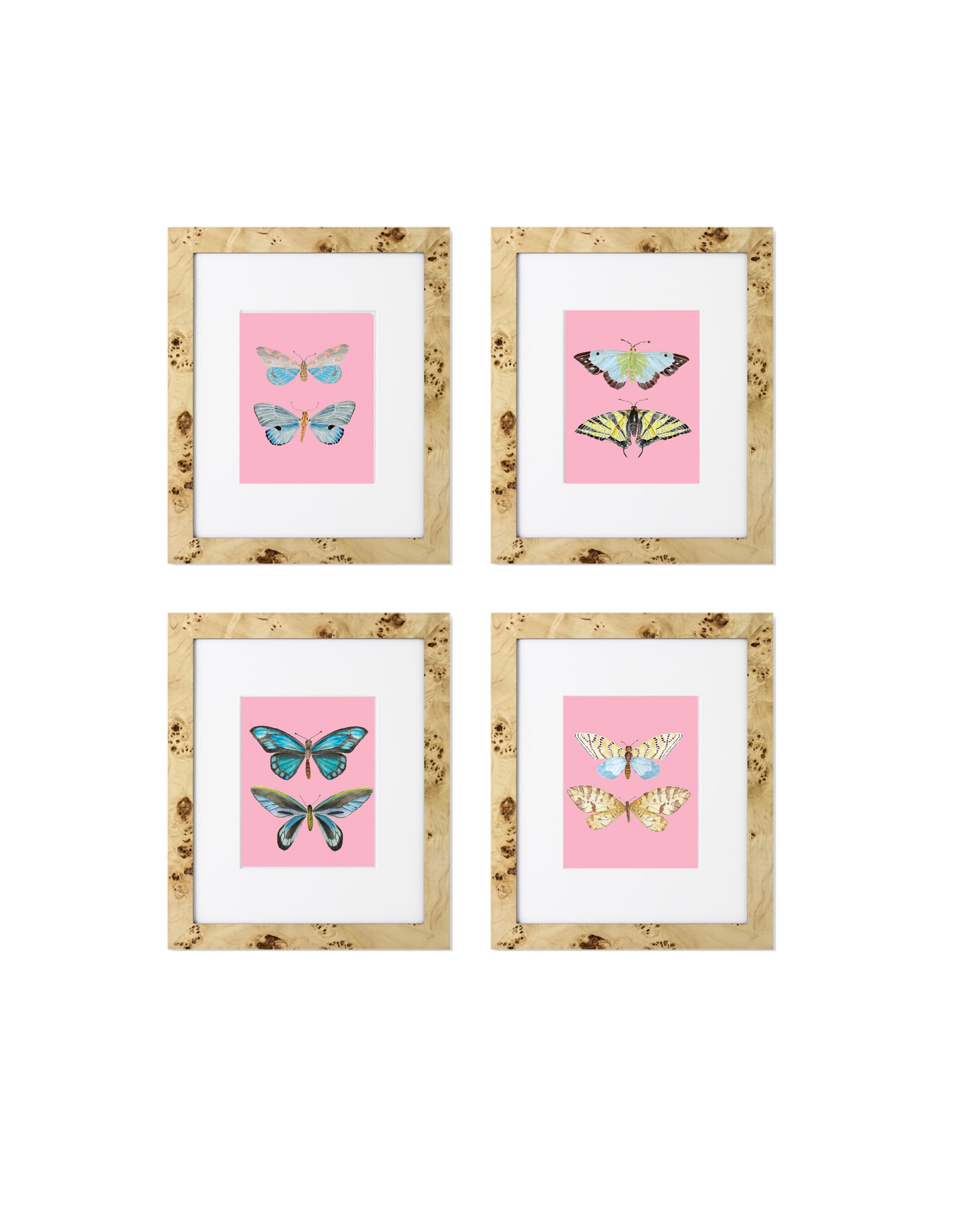 Gallery of Four Butterfly Pairs Wall Art Print | Multiple Colors | Bubblegum Pink | Evergreen | Beachy Blue