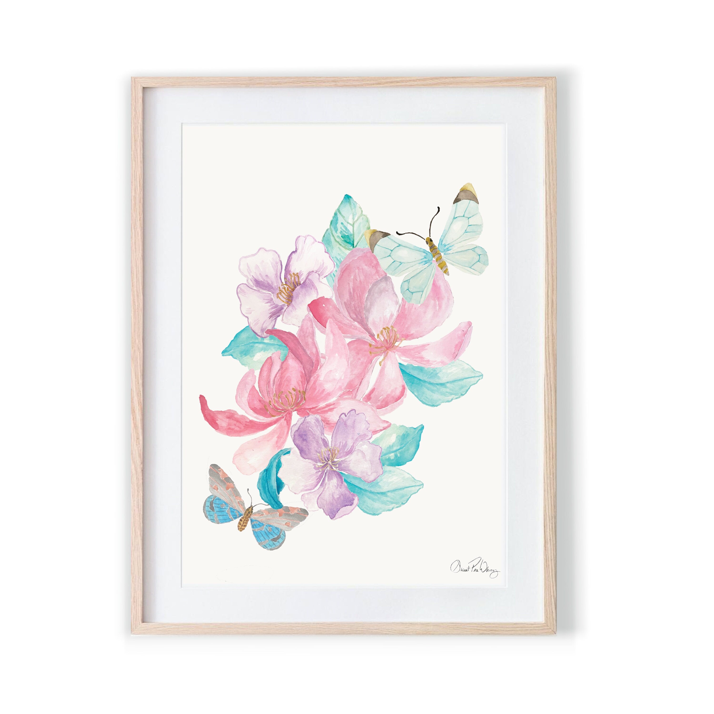 This one of a kind beautiful watercolor with butterflies and flowers is a perfect addition to your home decor. It also makes a wonderful addition to a nursery or a pretty housewarming gift, especially for those who love chinoiserie or botanical art. Enjoy choosing a color that fits your decor and your style. This custom color wall print allows you to decide on the color you like.