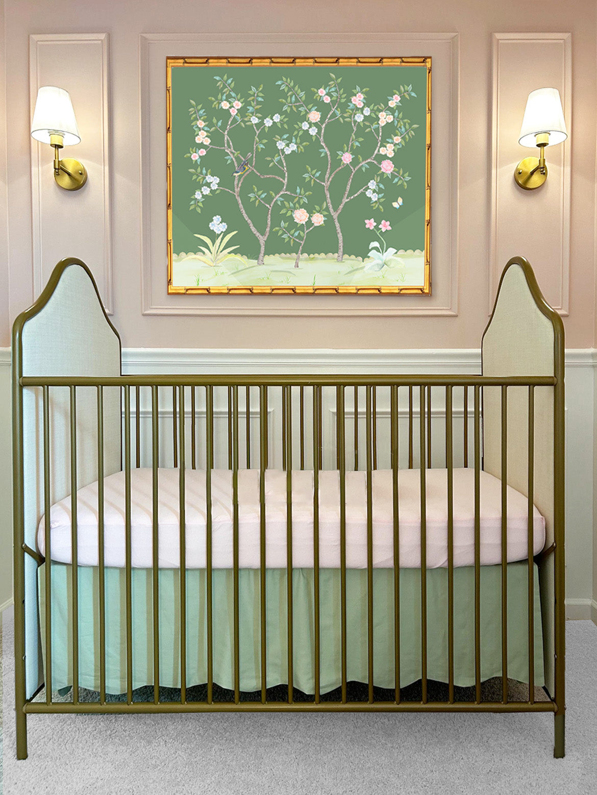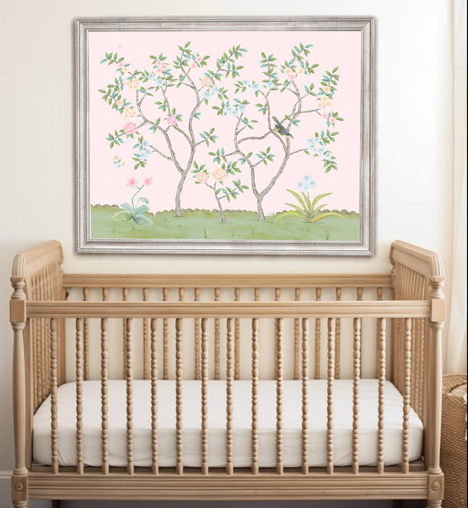 Original Chinoiserie Art Print with Peony Blossoms | Botanical Nursery Art
