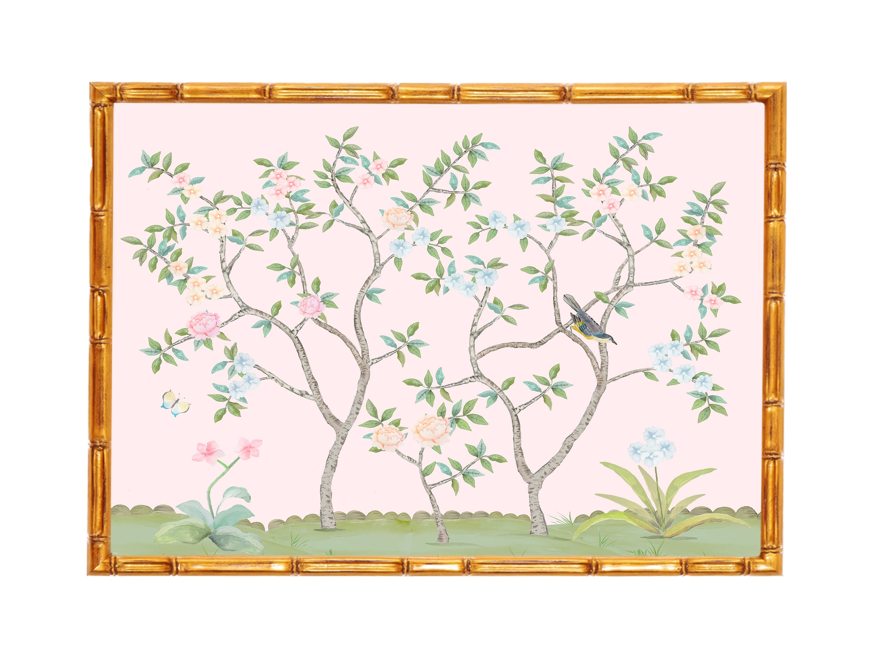 Original Chinoiserie Soft Pink Blossoms and Peonies