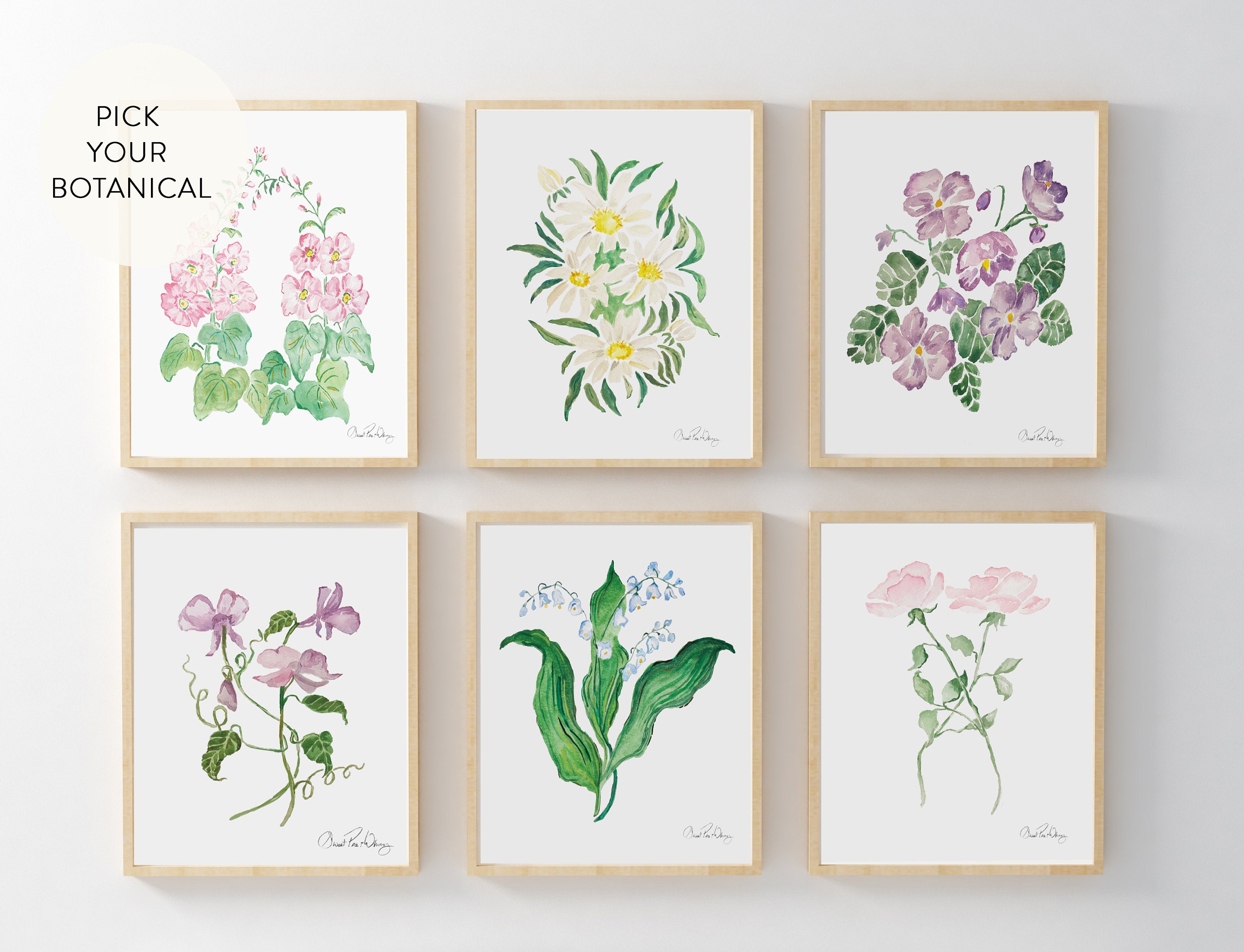 Watercolor Botanical Wall Art Set | Birth Month Flowers