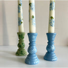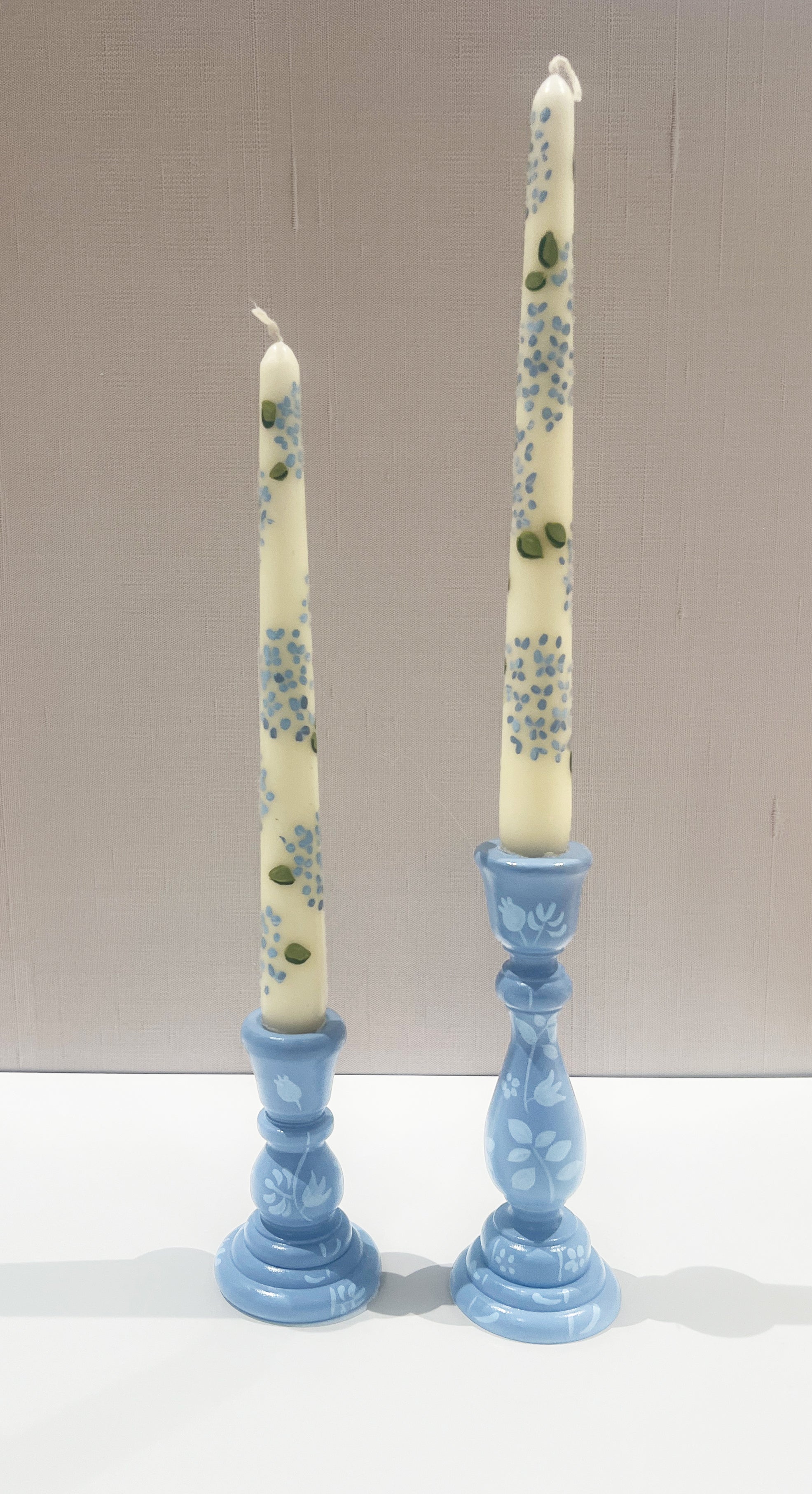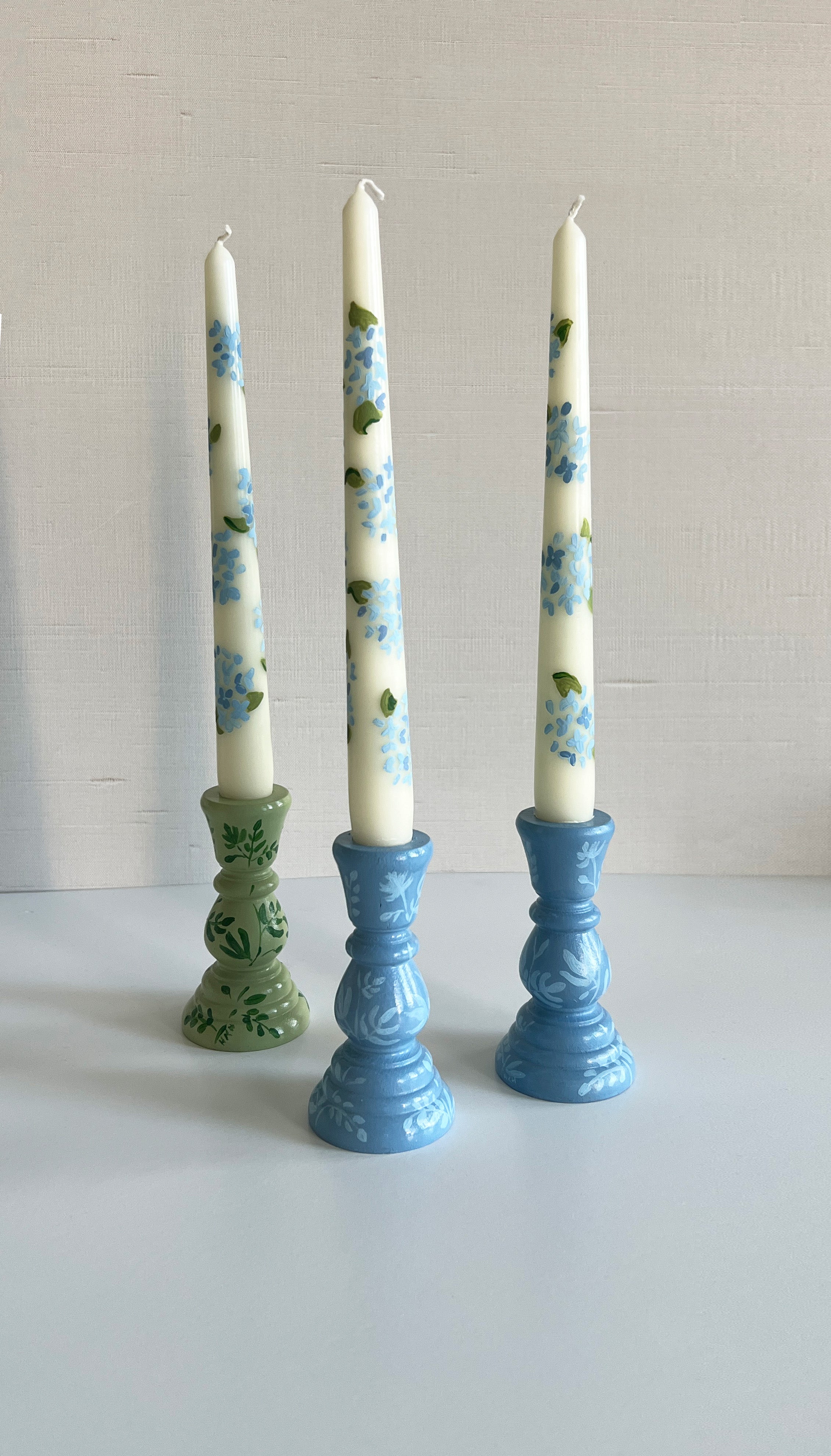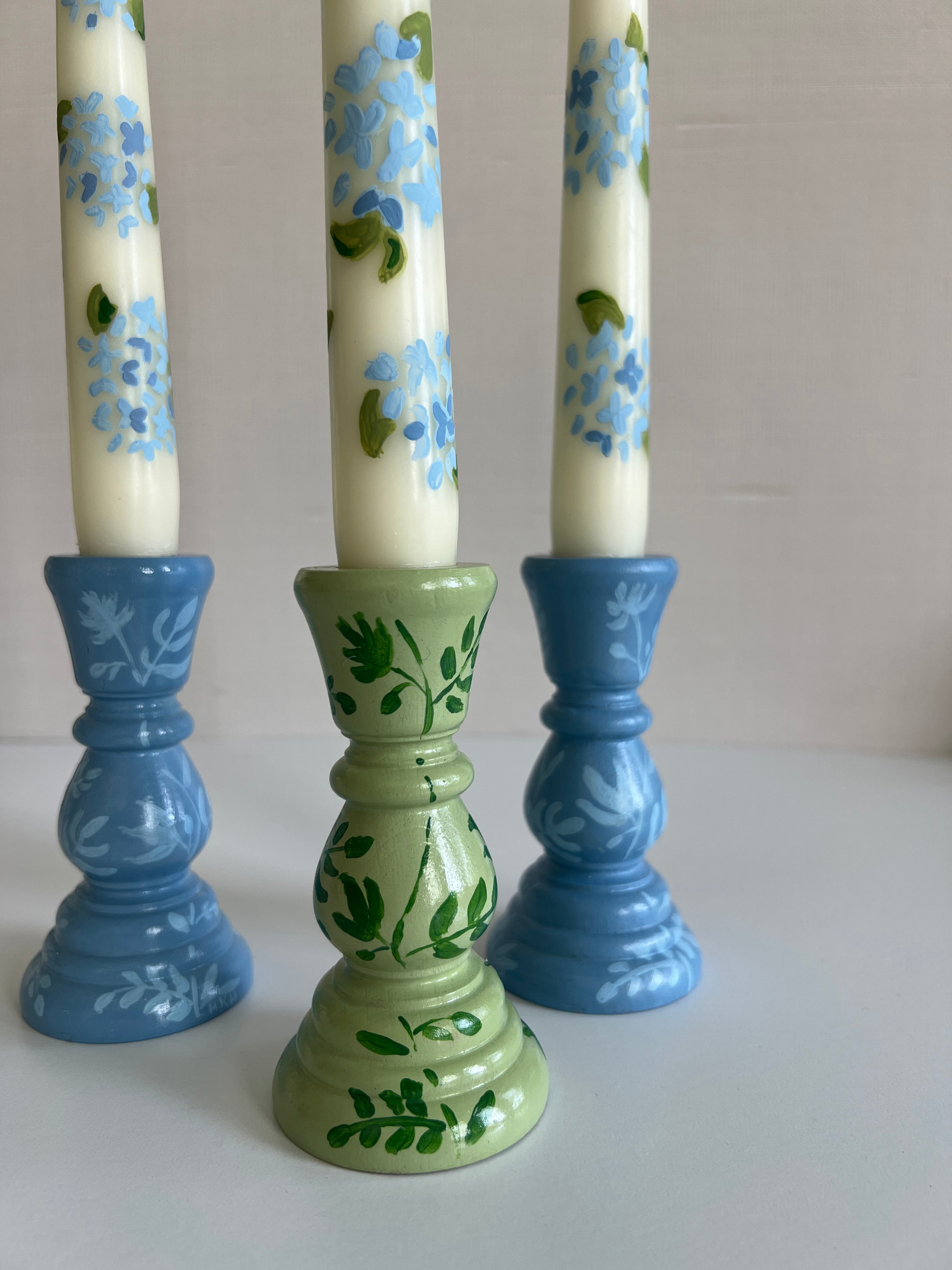Lovely hand painted candleholders. Each candleholder includes artist signature from Sweet Pea + Whimsy and every candleholder is unique since it is hand painted. Perfect for a unique gift.