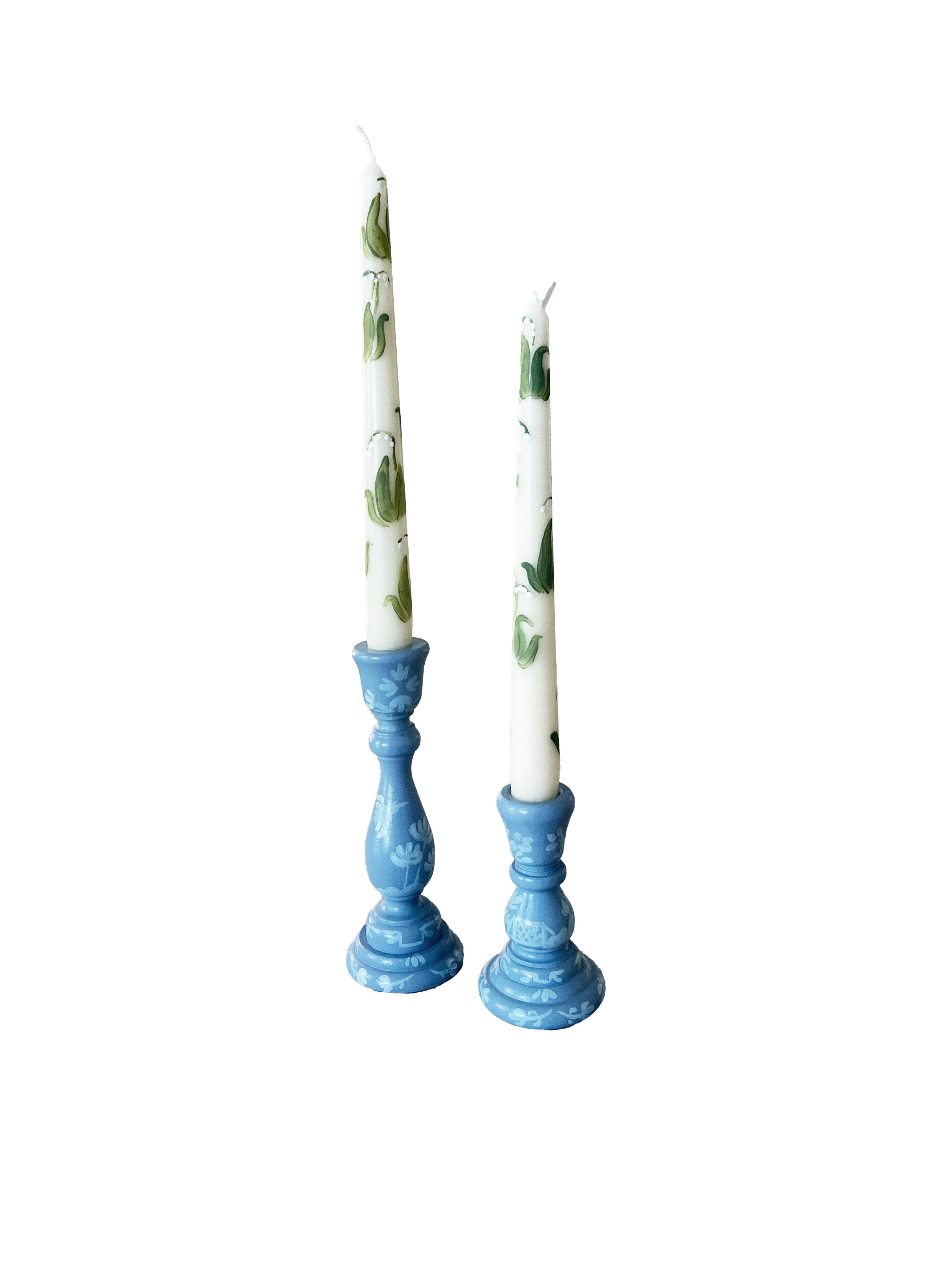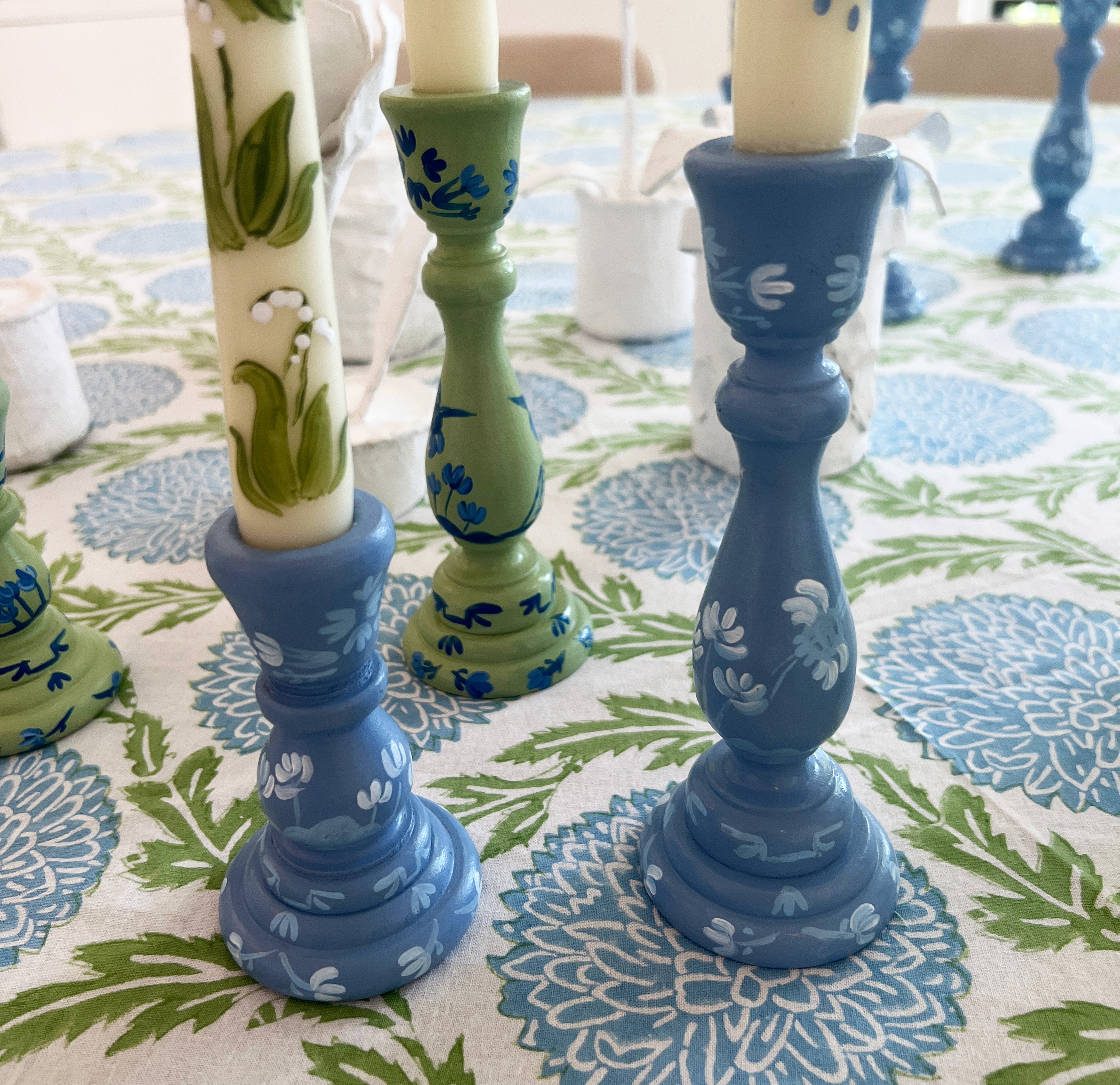 Lovely hand painted candleholders. Each candleholder includes artist signature from Sweet Pea + Whimsy and every candleholder is unique since it is hand painted. Perfect for a unique gift.