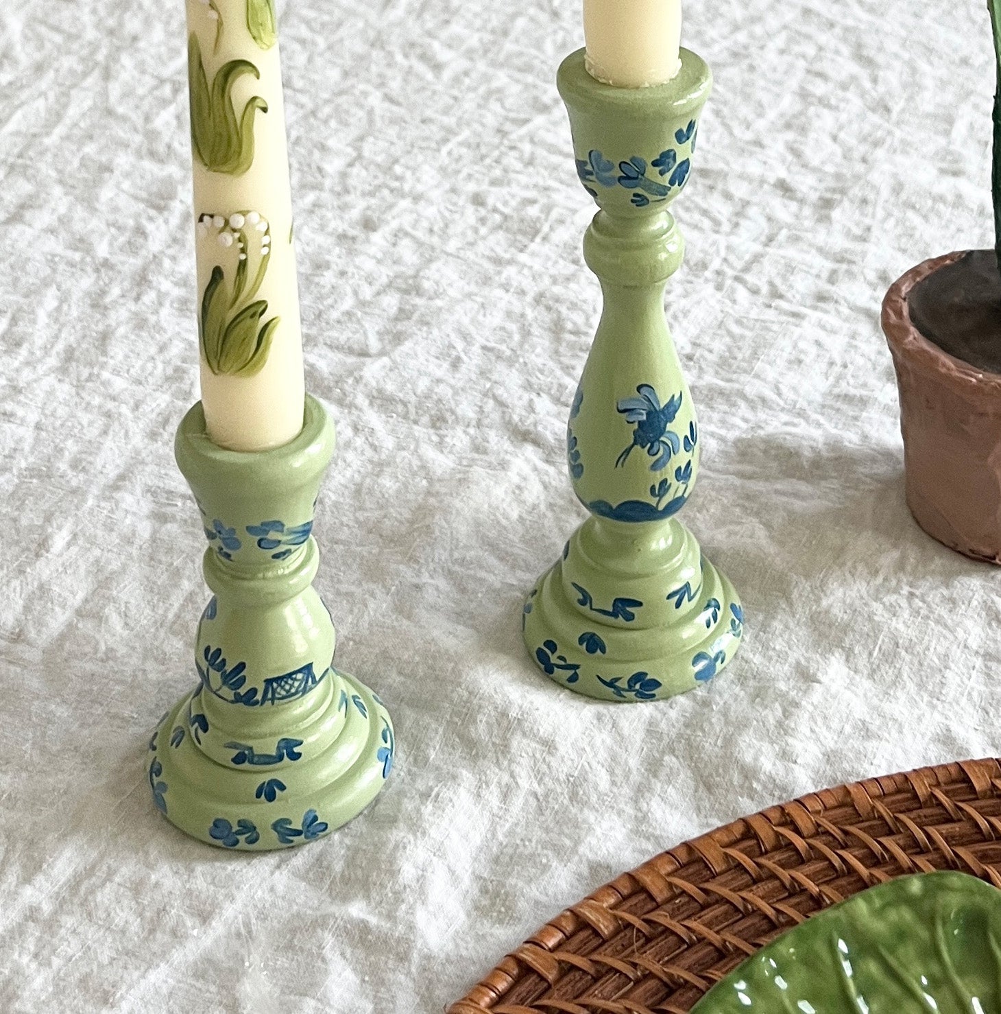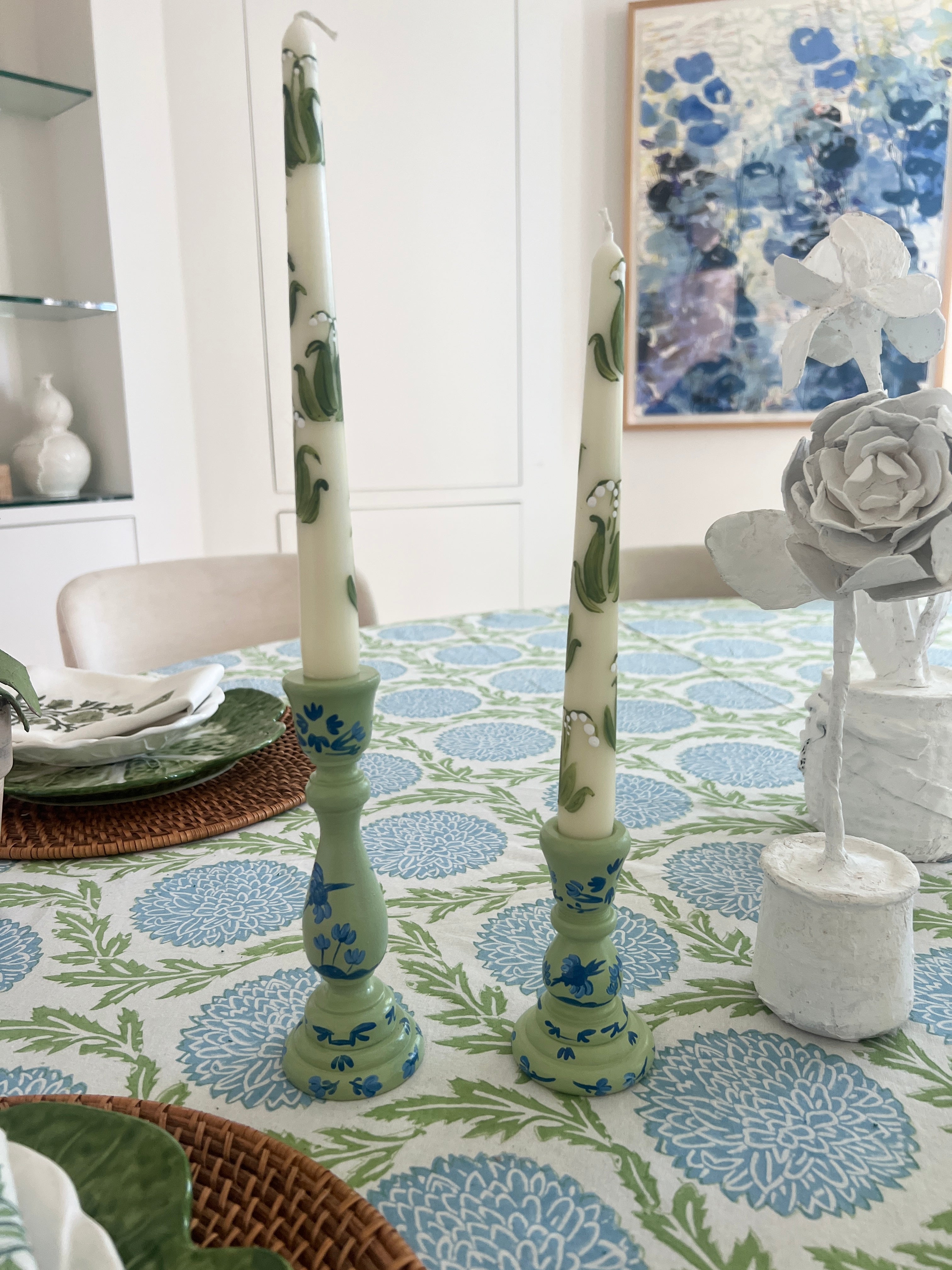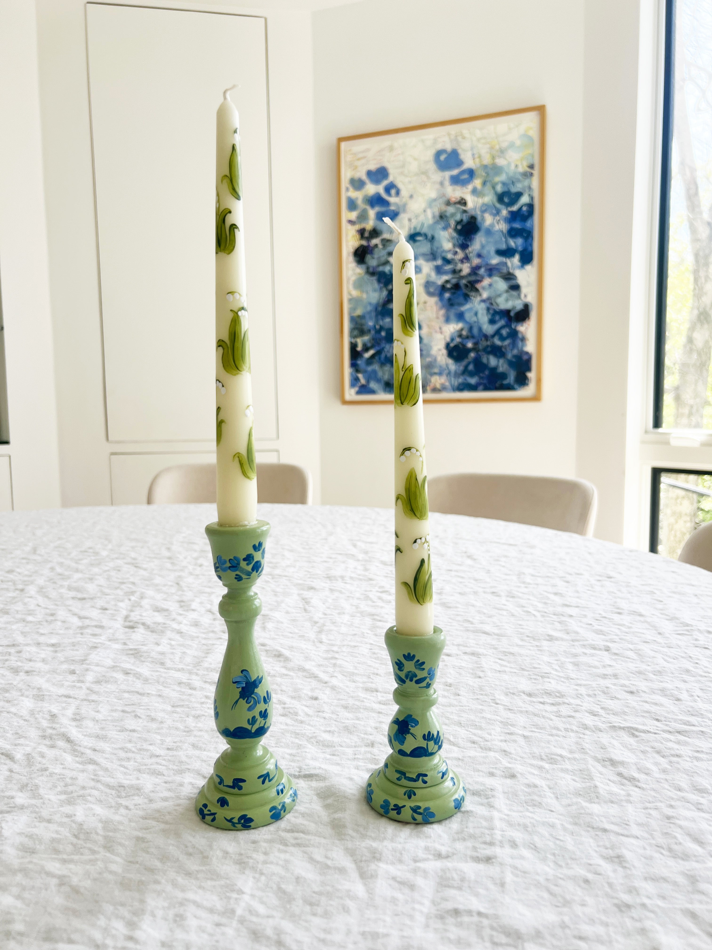 Hand-Painted Candleholder Gift Set-Lily of the Valley Candles