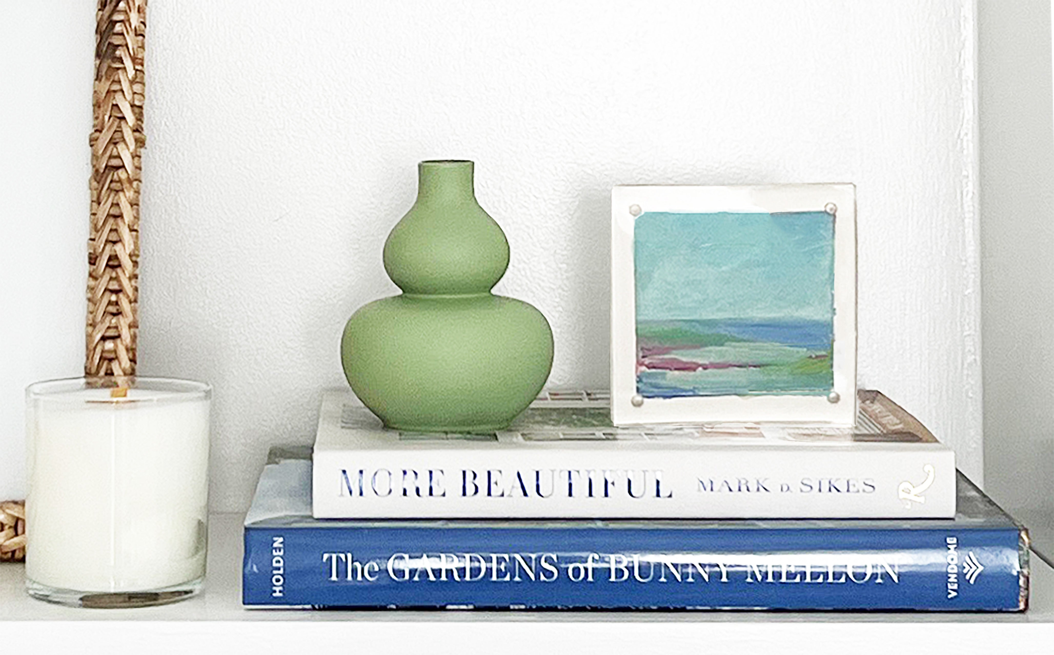 Wonderful set with small vase, small framed art, and gardenia soy candle.