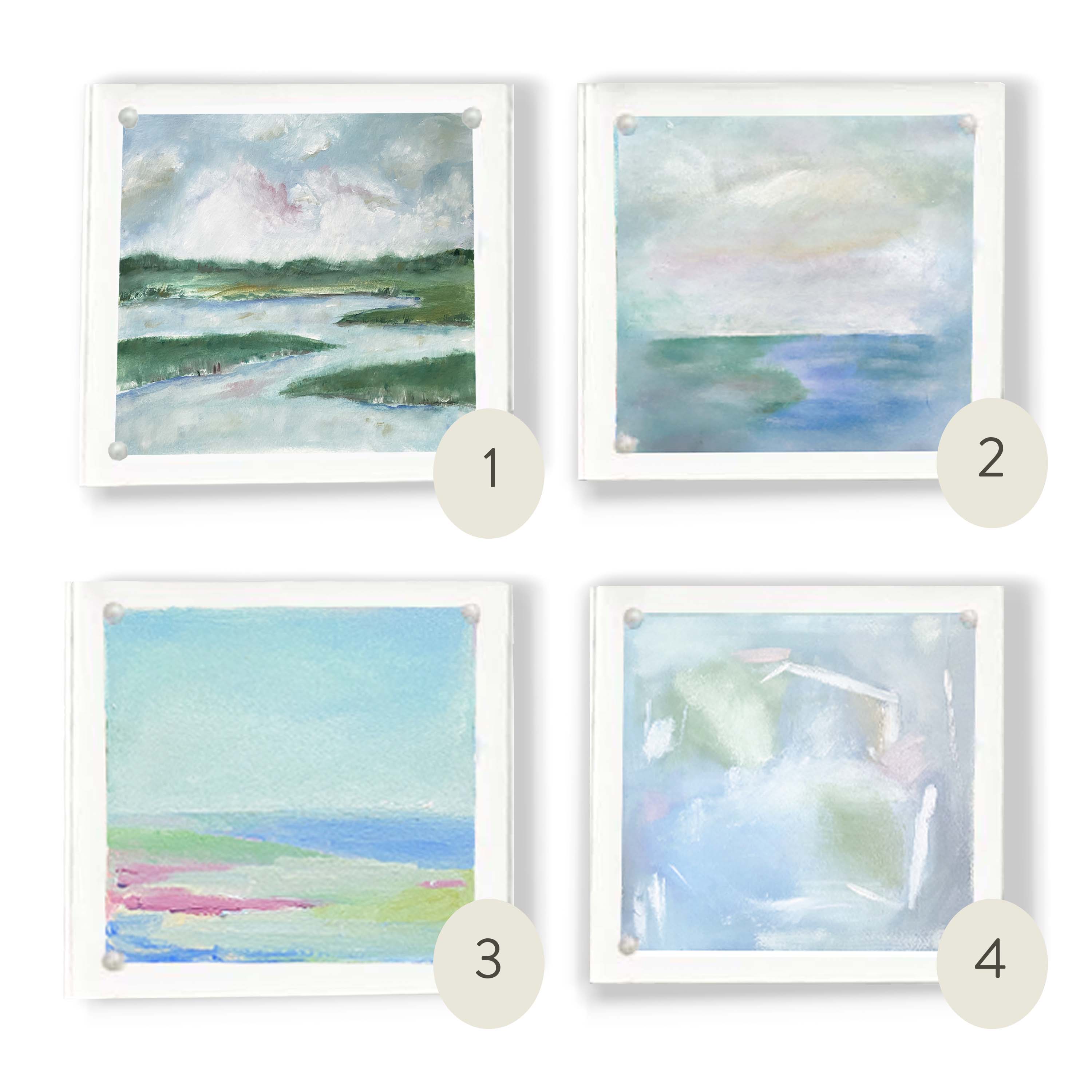 The framed art is with an acrylic frame. Art print is a 5x5 inch glicee archival print.