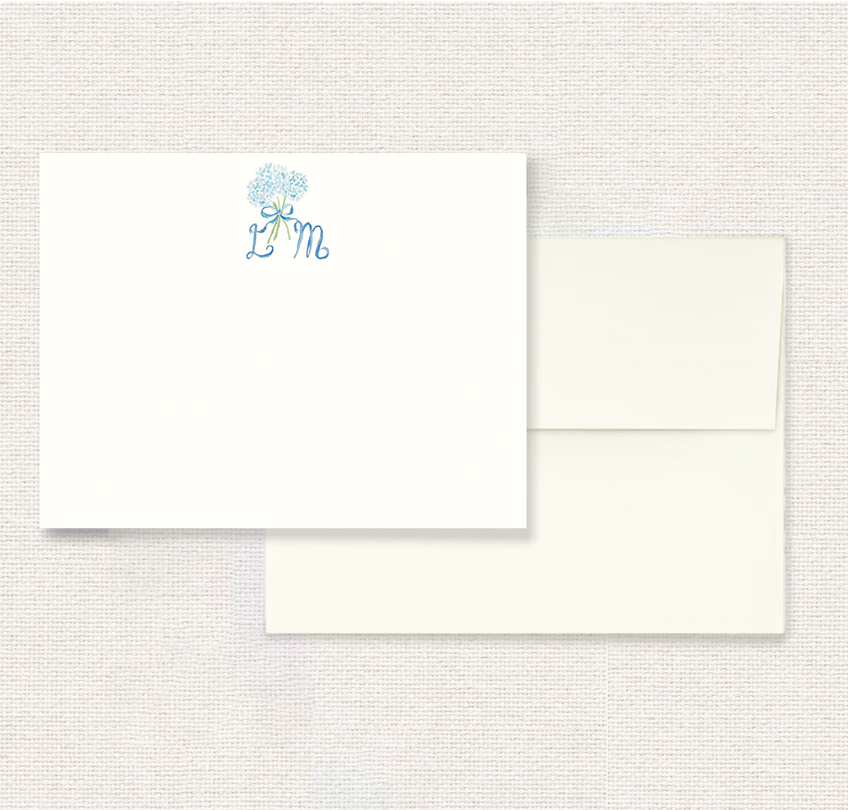 Hydrangea Custom Ribbon Monogram Note cards | Personalized stationery | Custom notecards