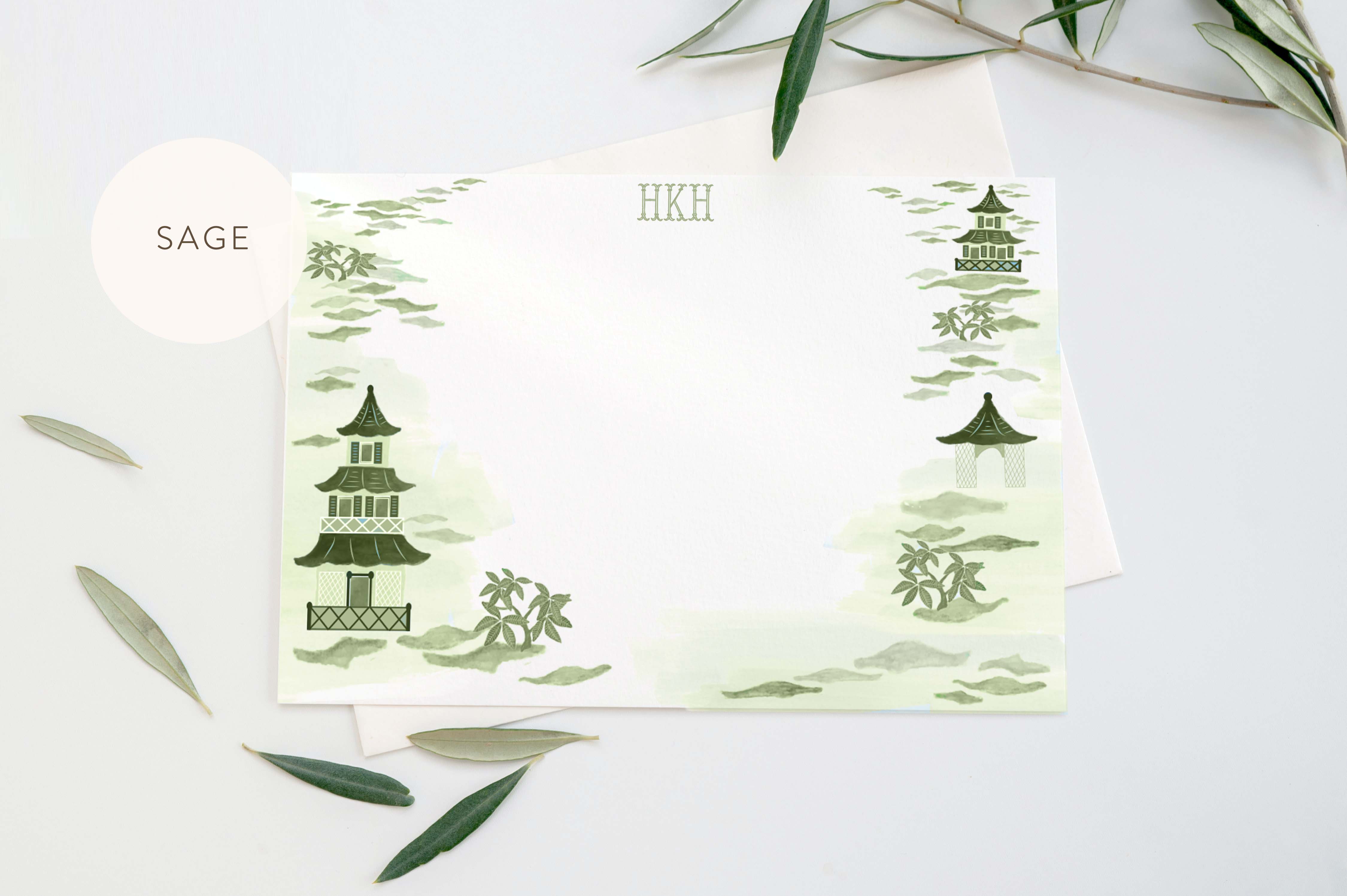 Pagoda Chinoiserie Stationery Personalized Note Set