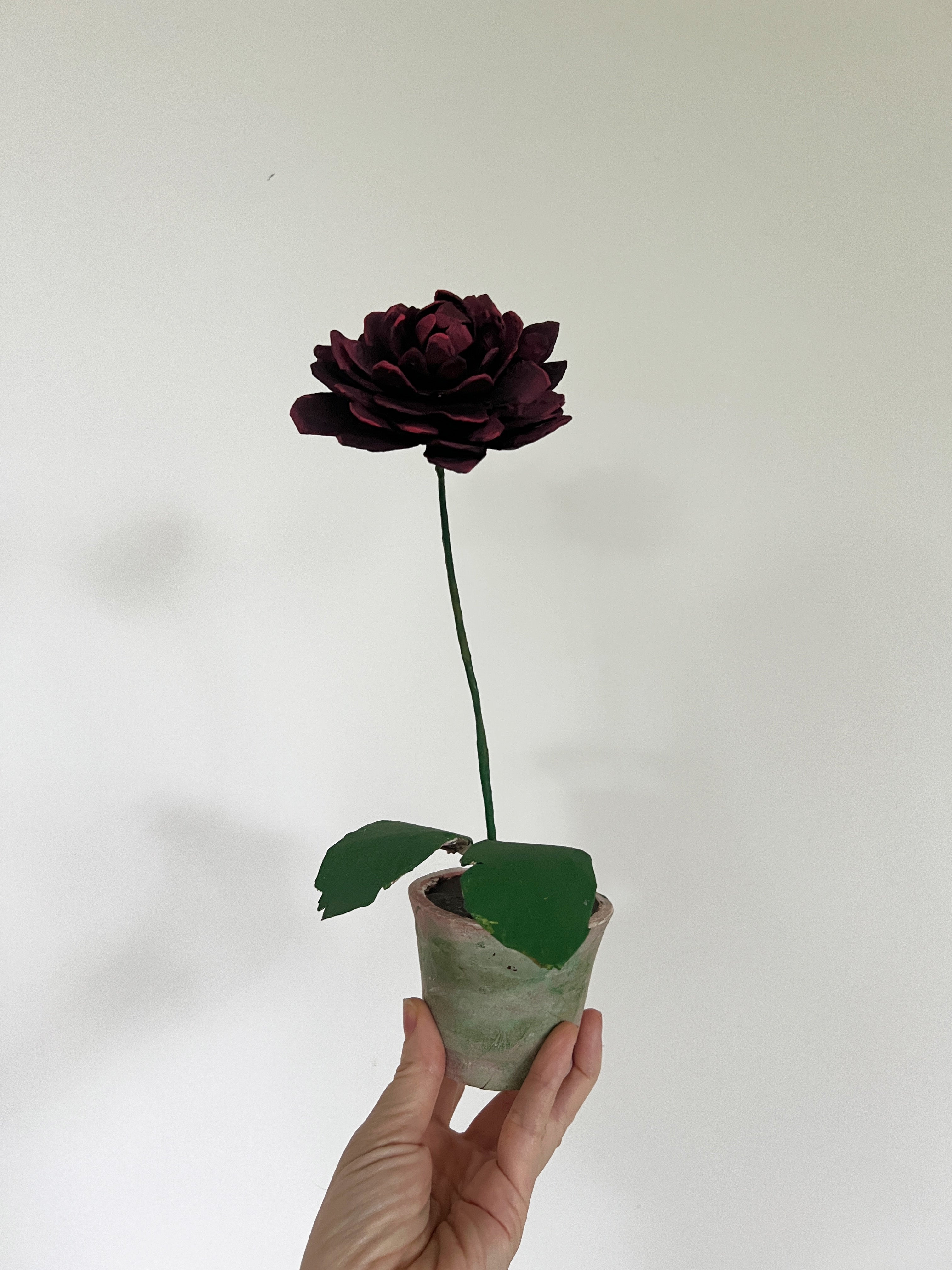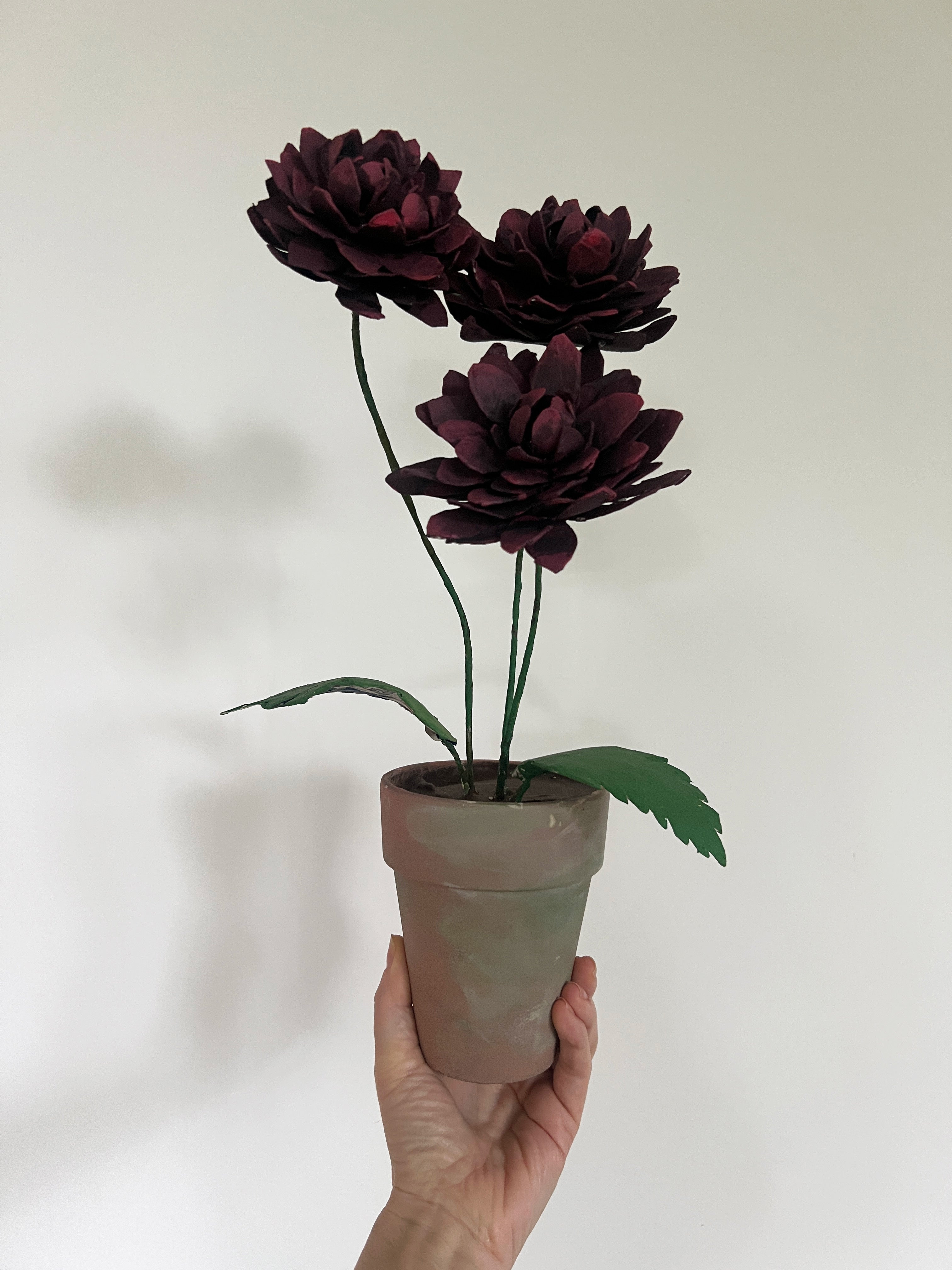 Handmade Paper Mâché & Clay Potted Tall Black Dahlia