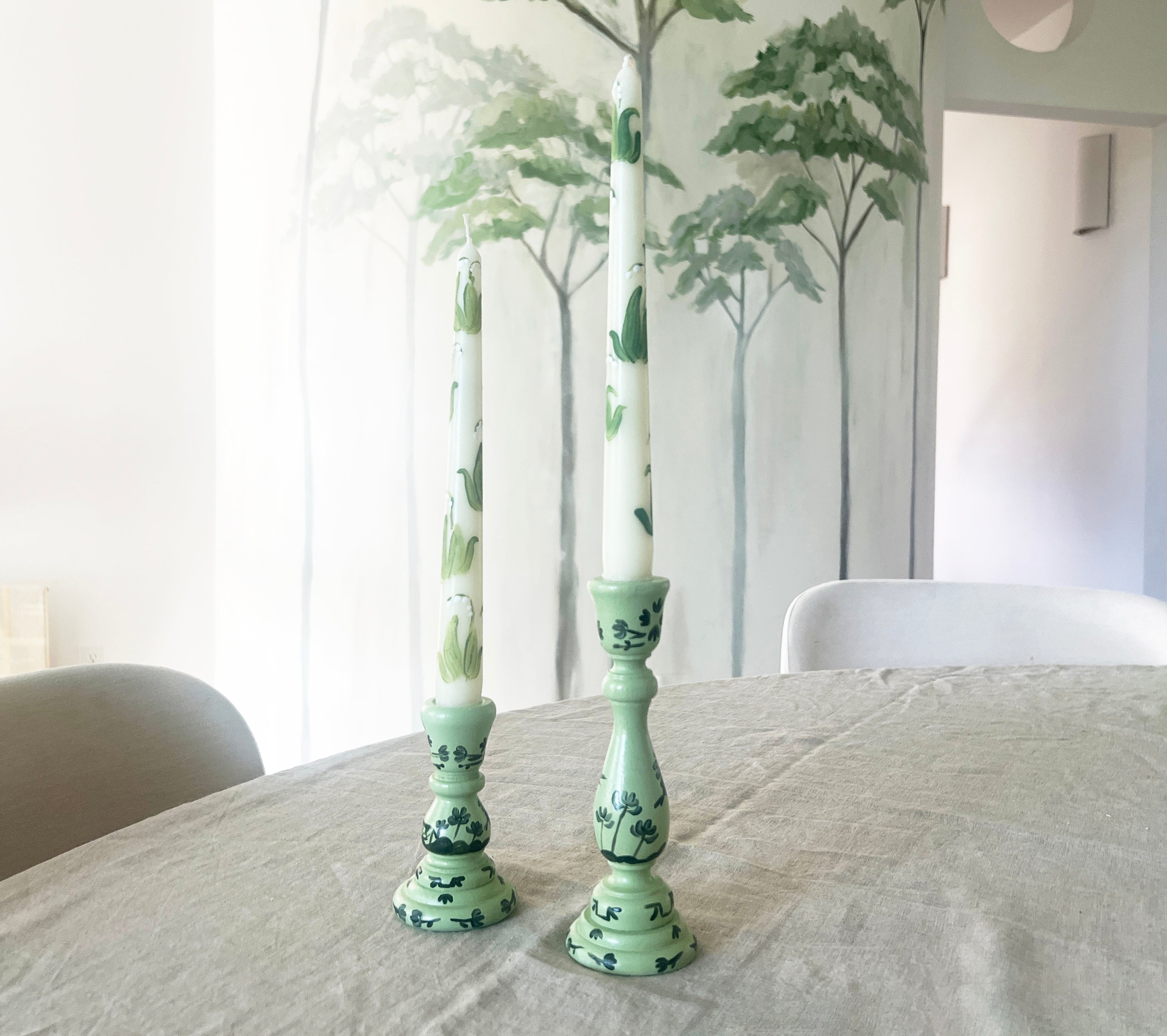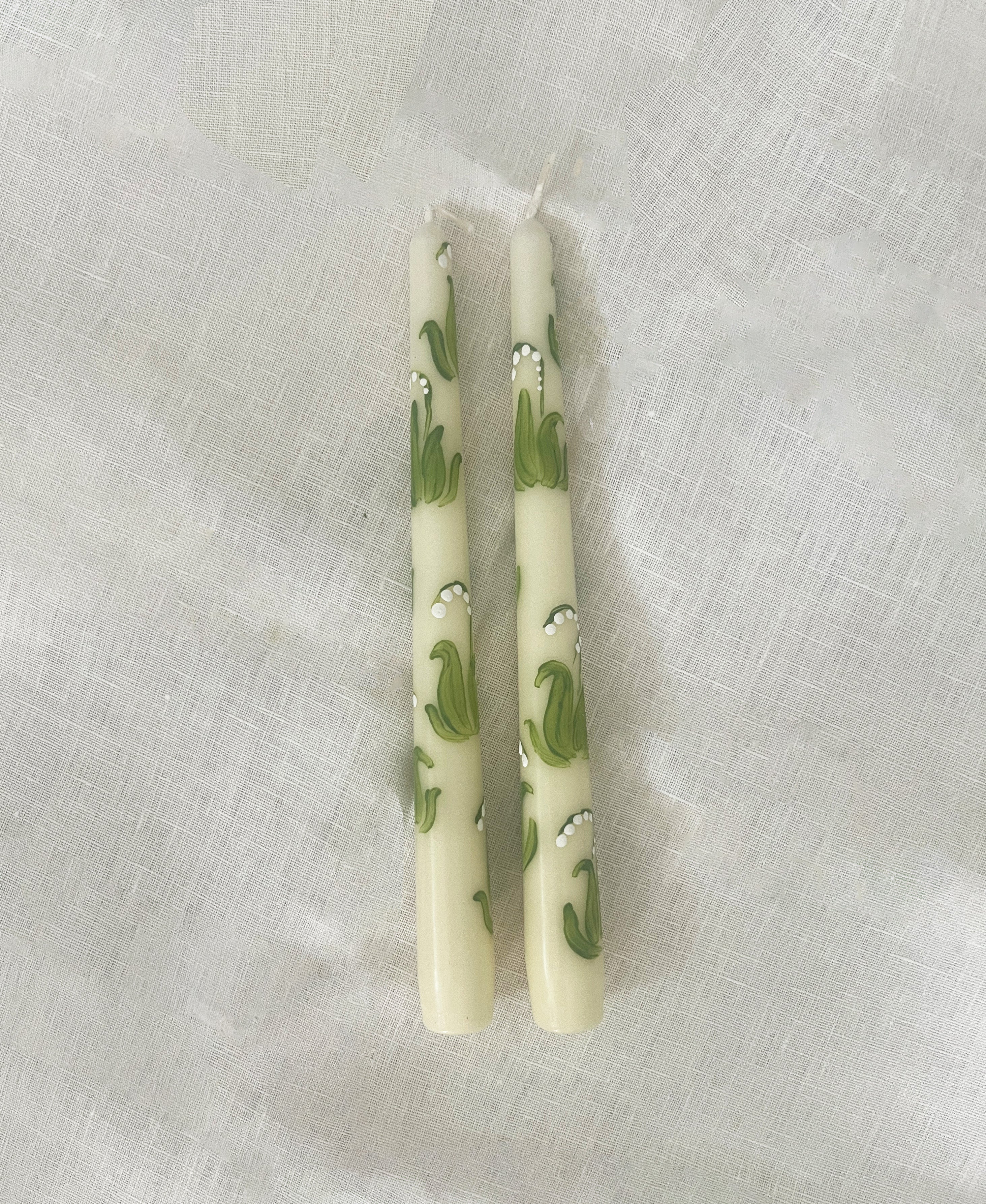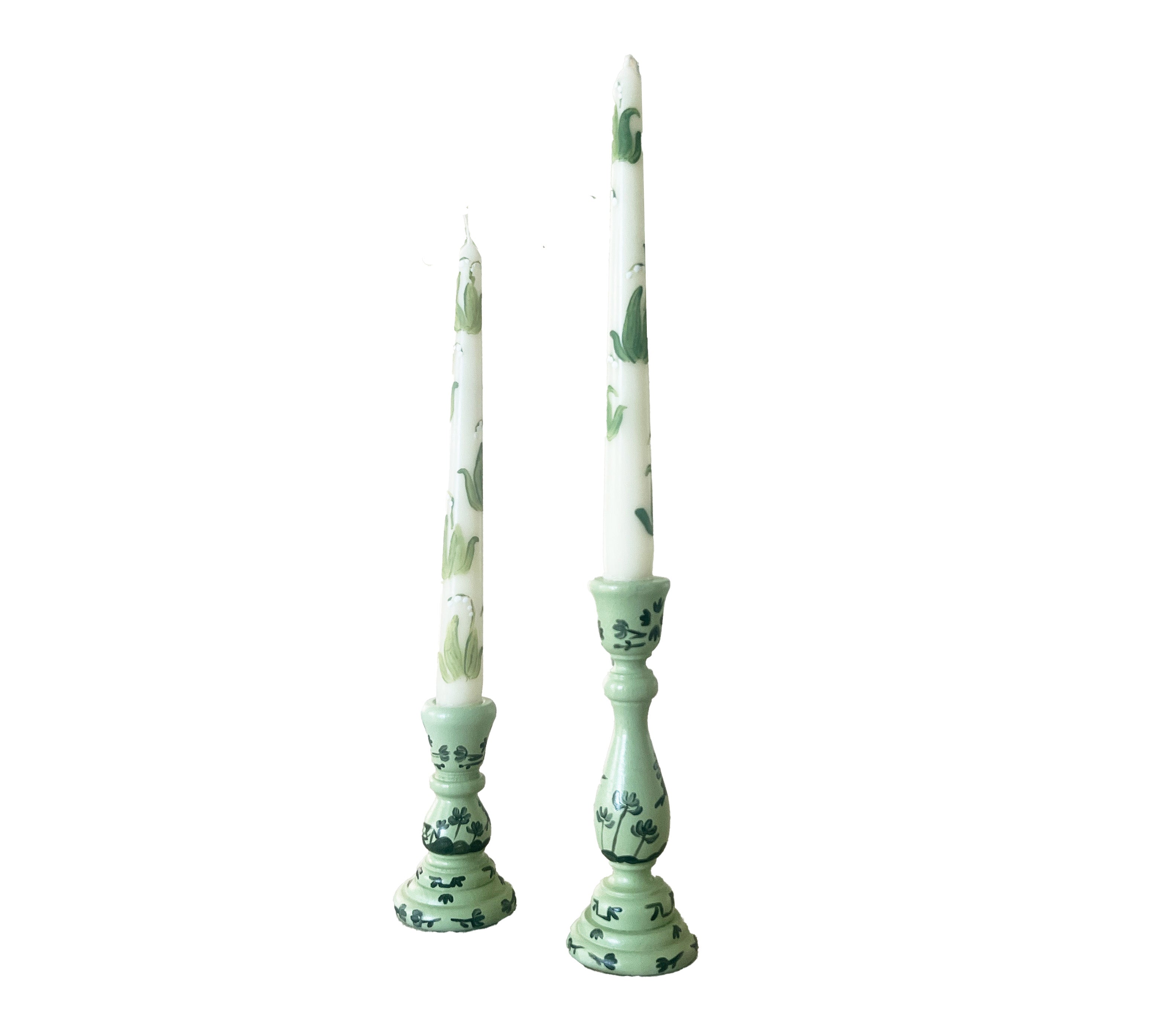 Hand-Painted Candleholder Gift Set-Lily of the Valley Candles