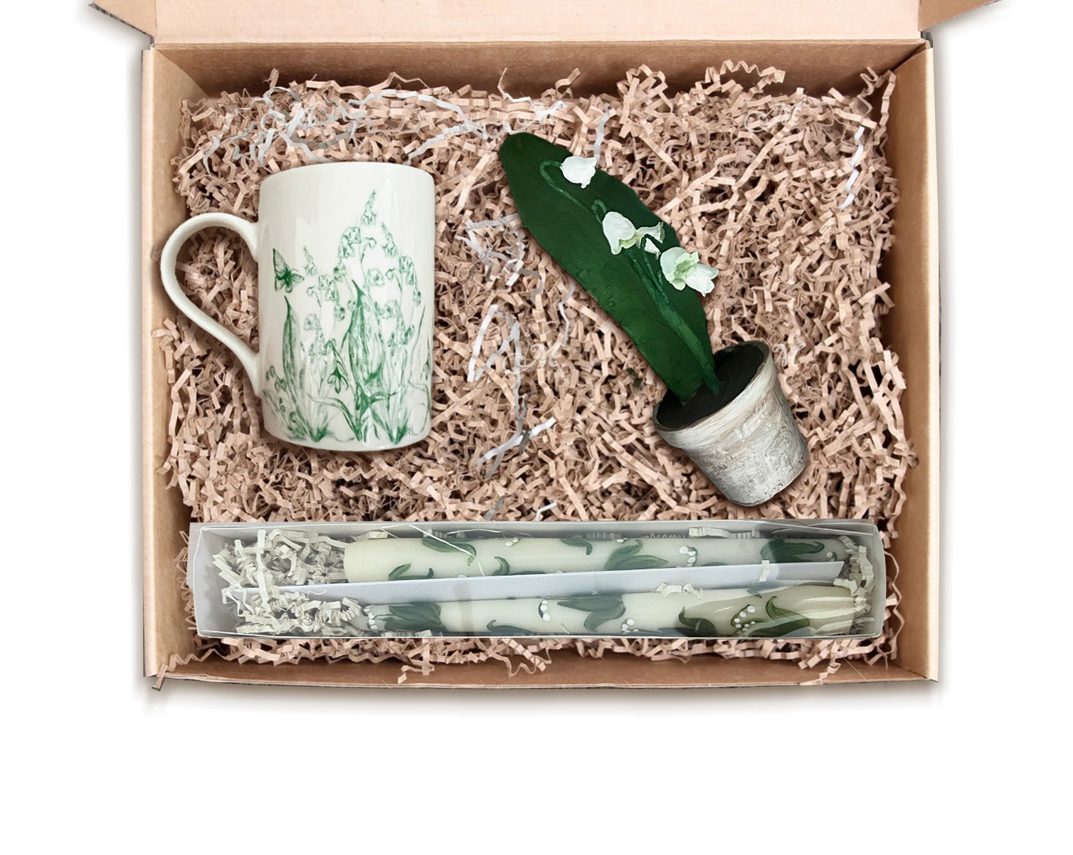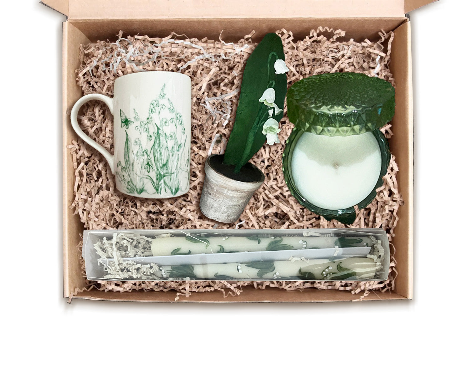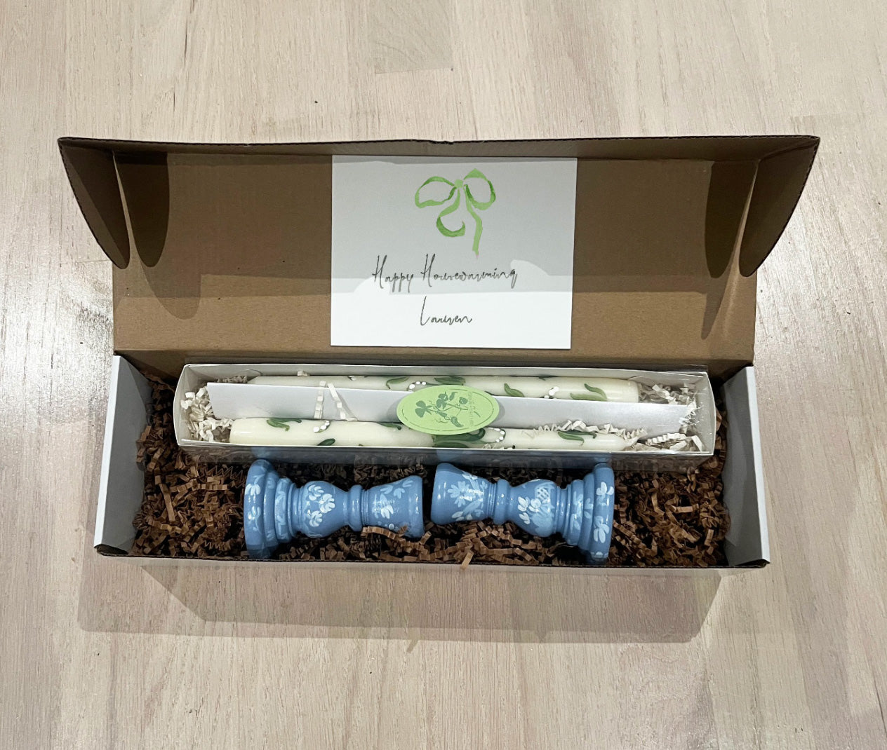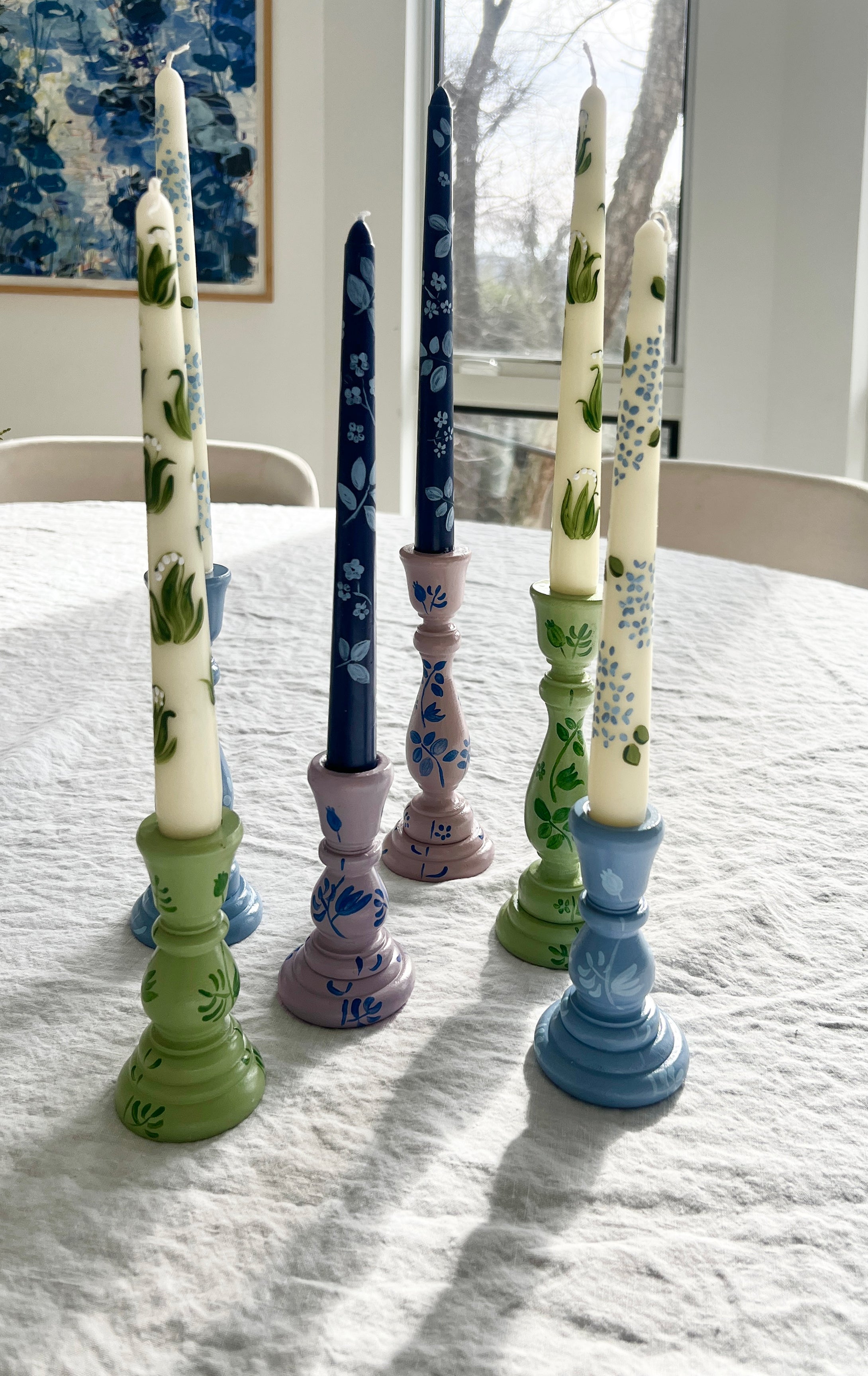 Hand-Painted Candleholder Gift Set-Lily of the Valley Candles