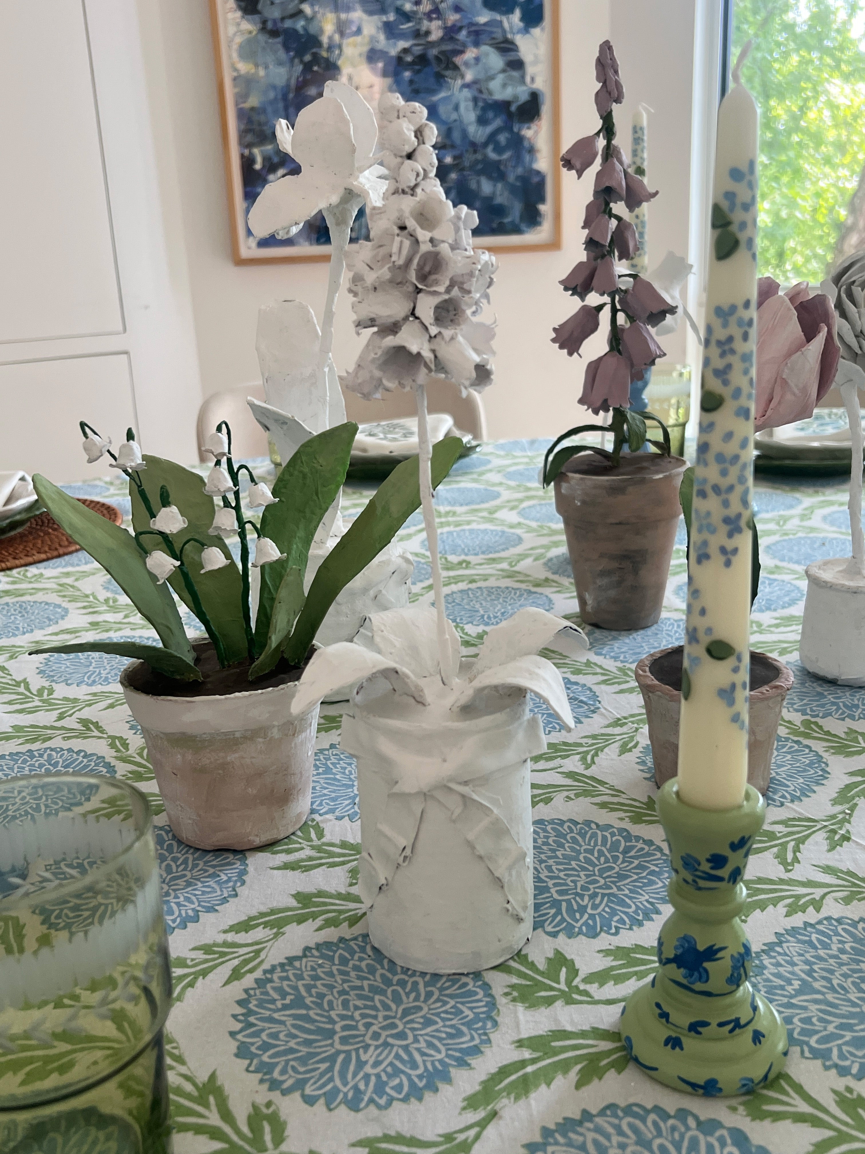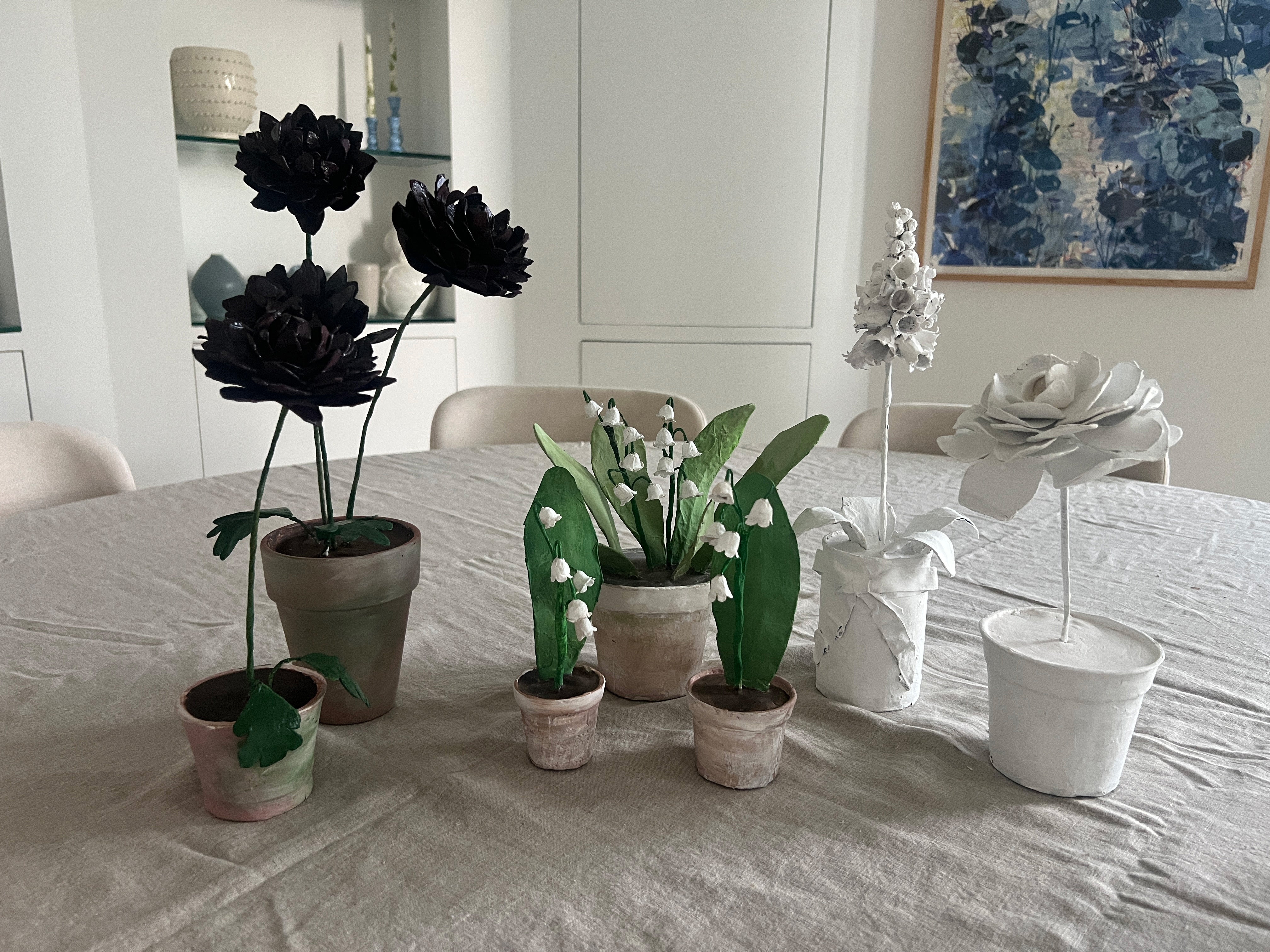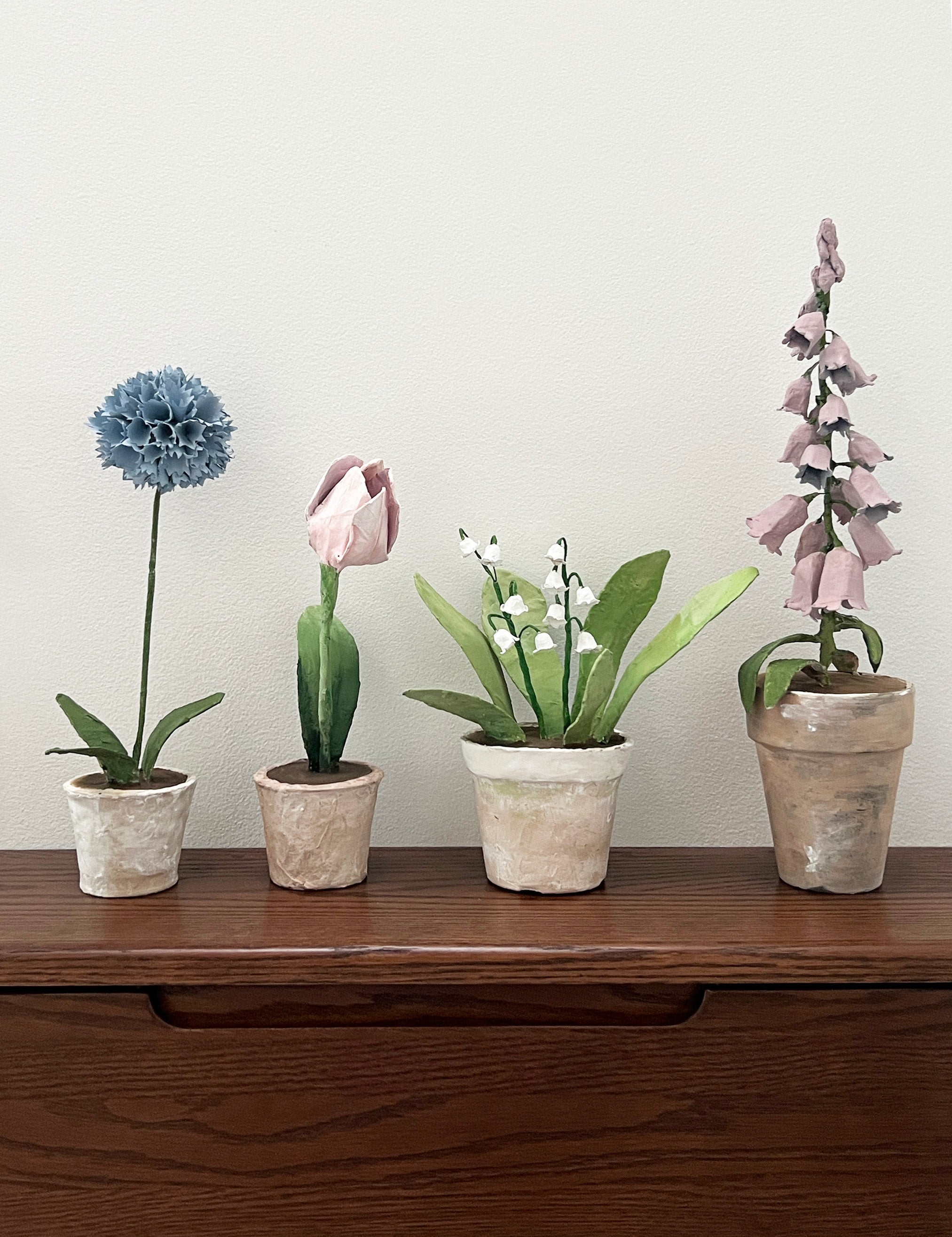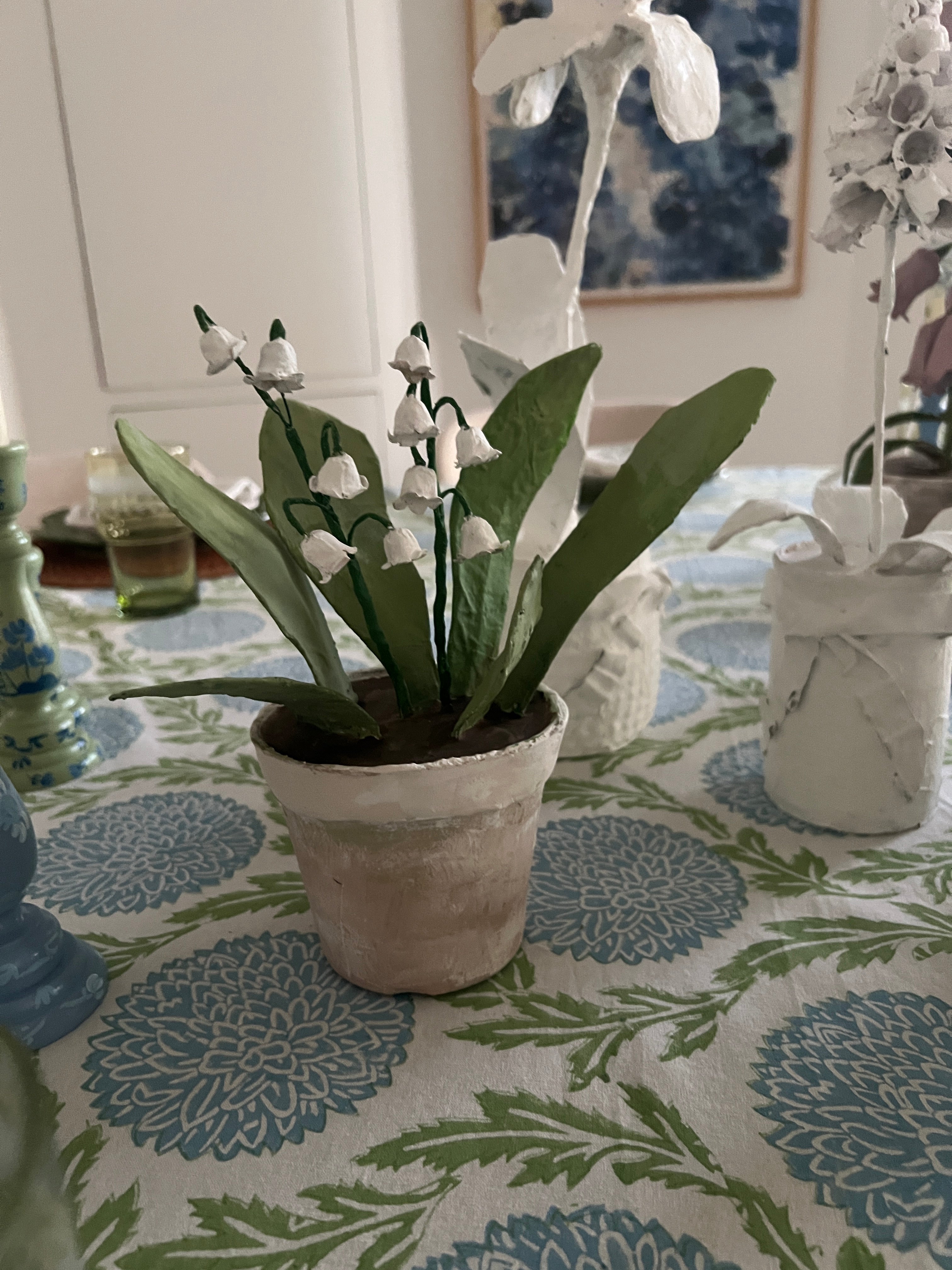 Handmade Paper Mâché & Clay Potted Lily of the Valley