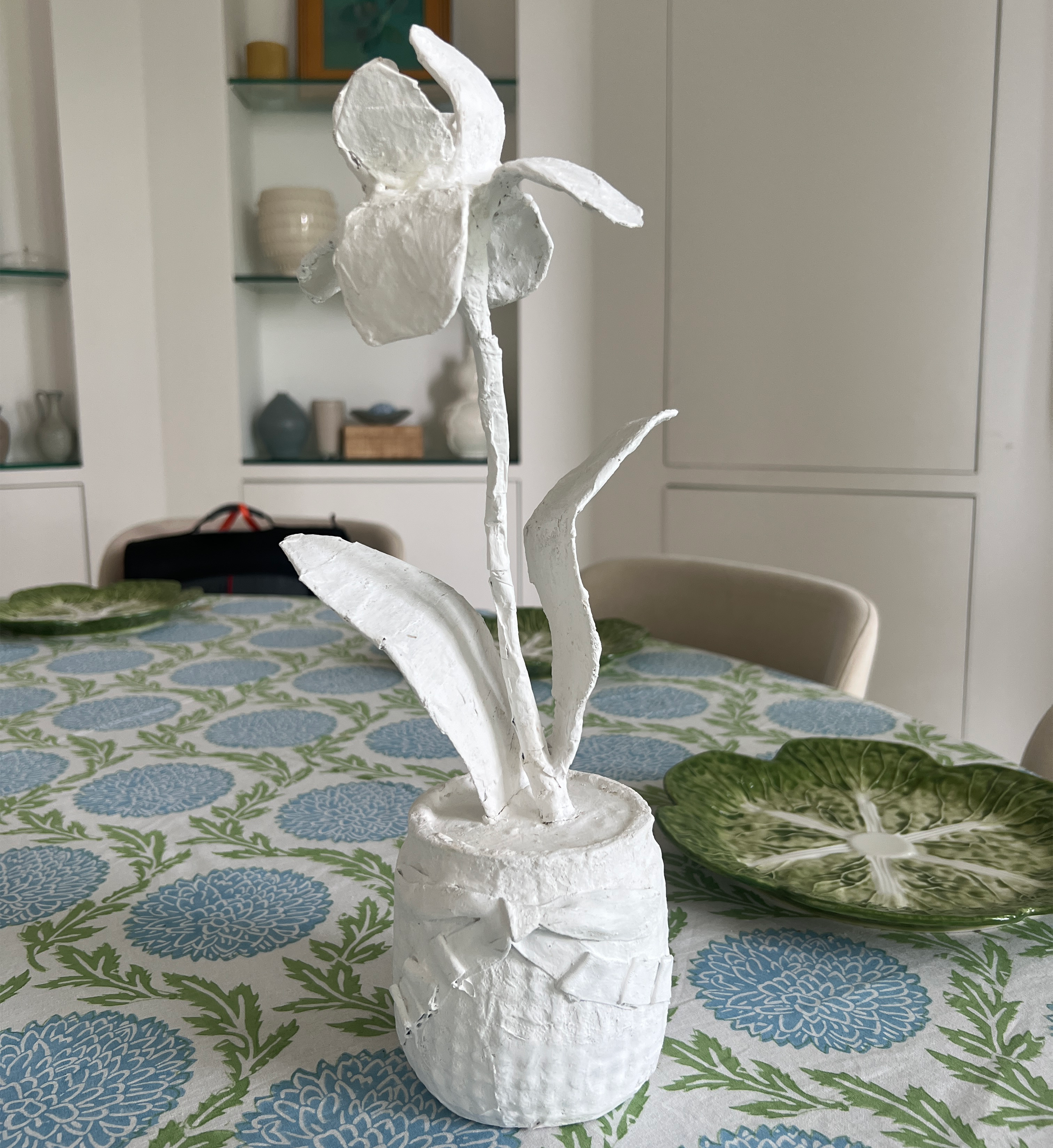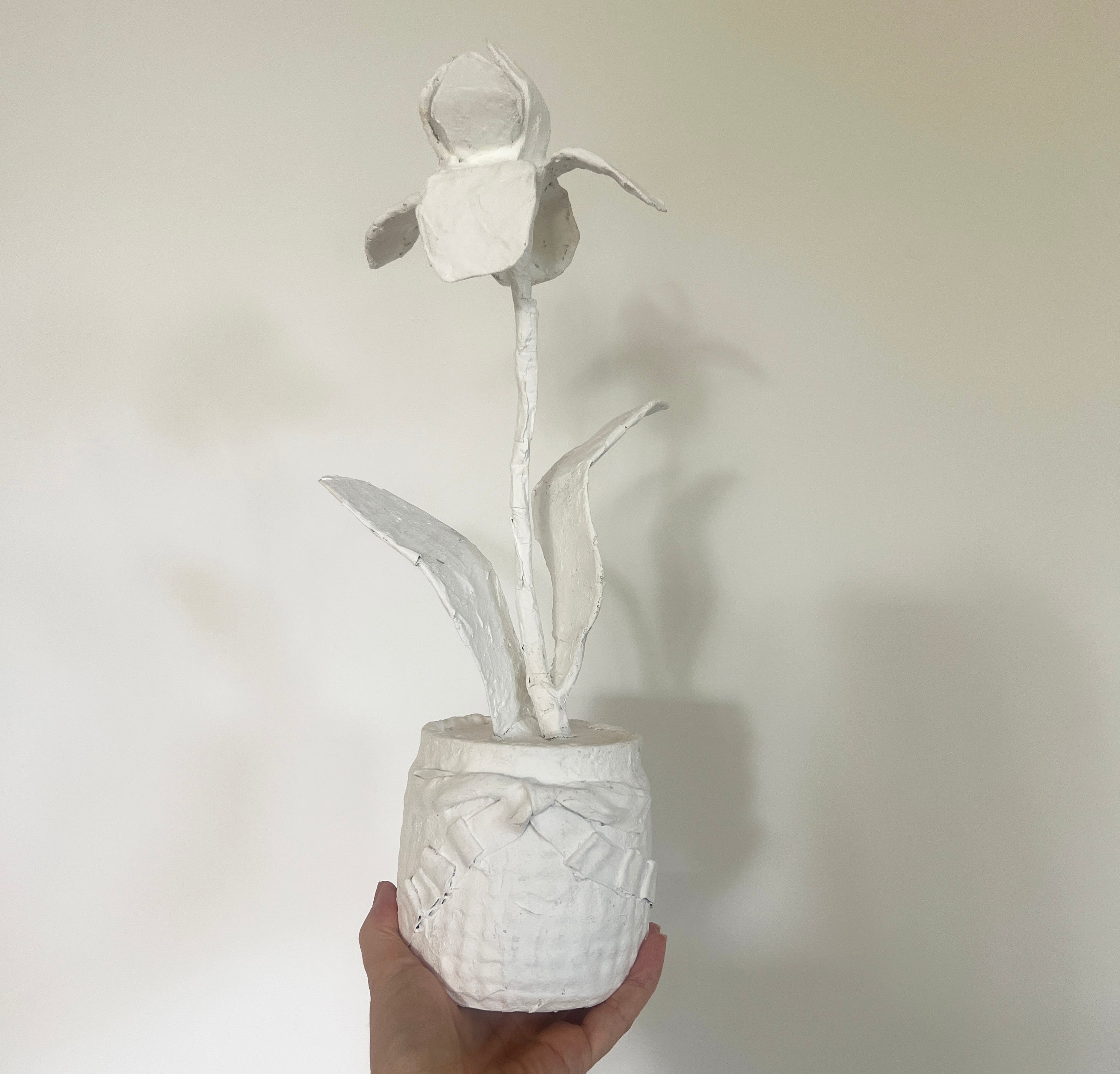 Handmade Paper Mâché & Clay Potted Large Iris Flower – White