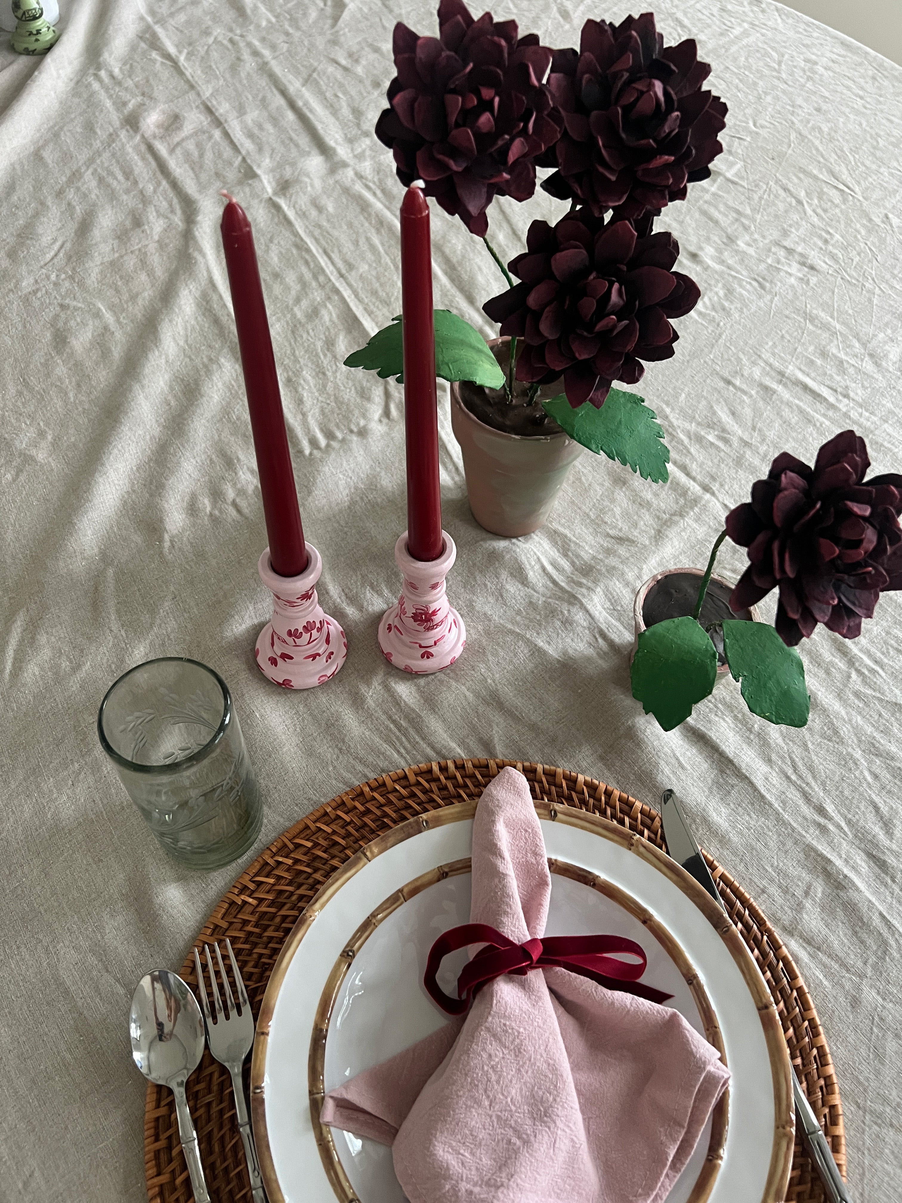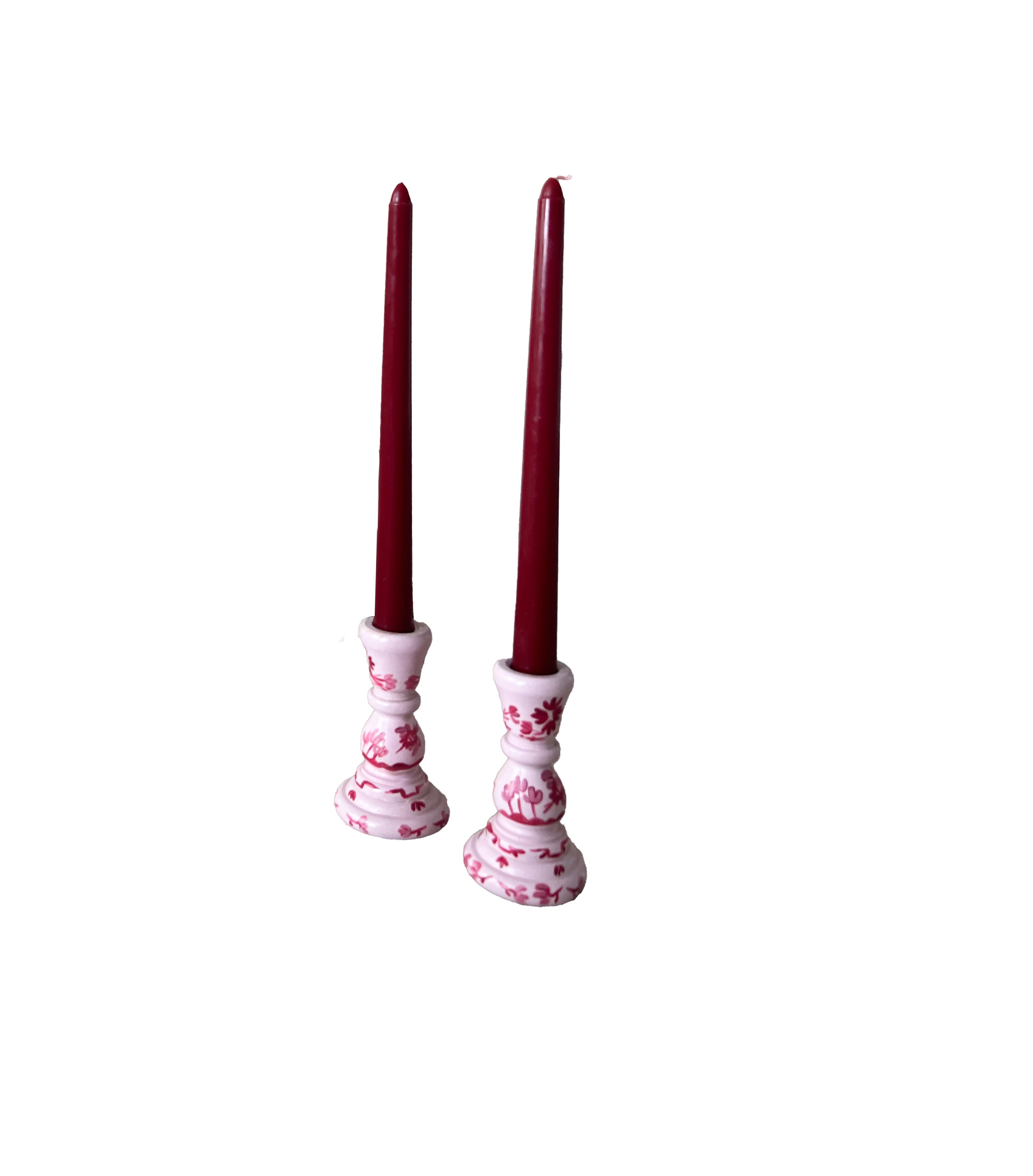 Pink and Burgundy Ginori style Hand Painted candleholders