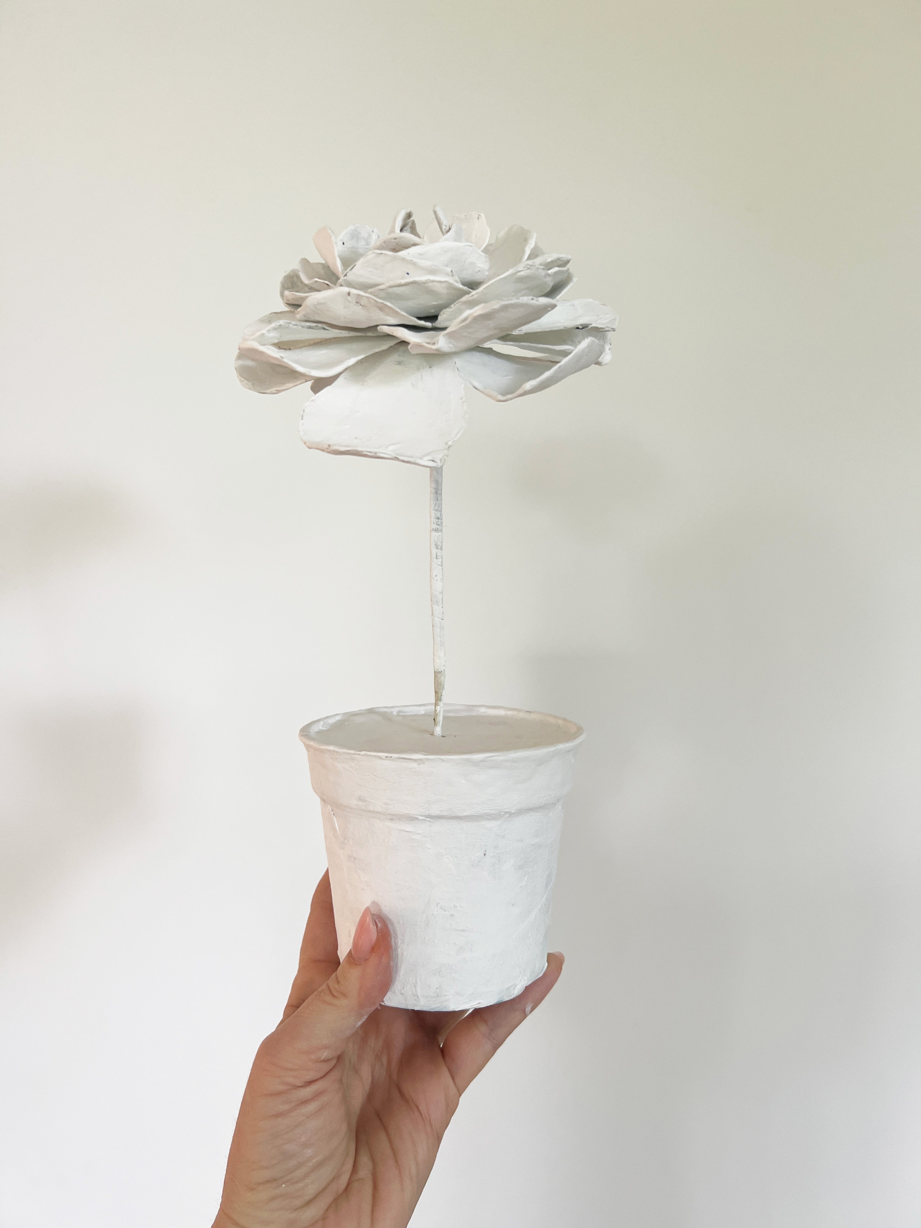 Handmade Paper Mâché & Clay Potted Large Rose Flower – White