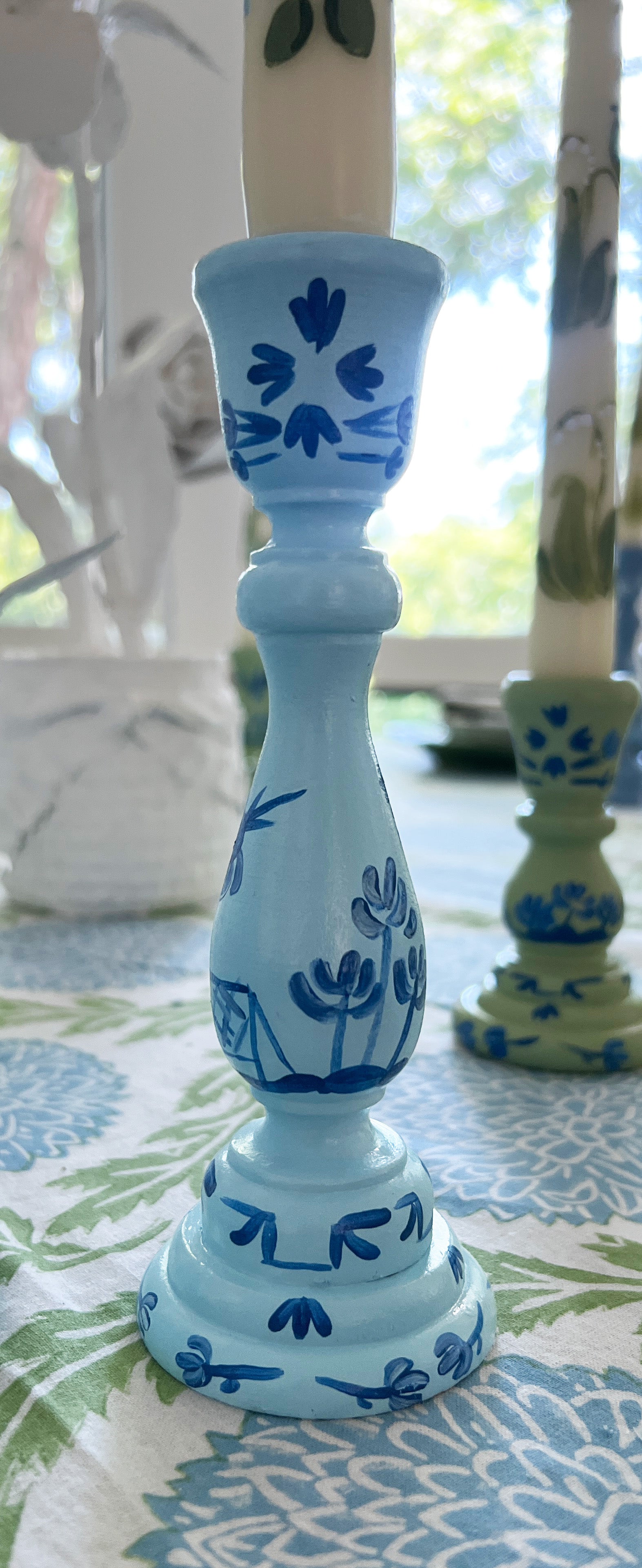 Blue and white Ginori Style Floral Hand Painted candleholders