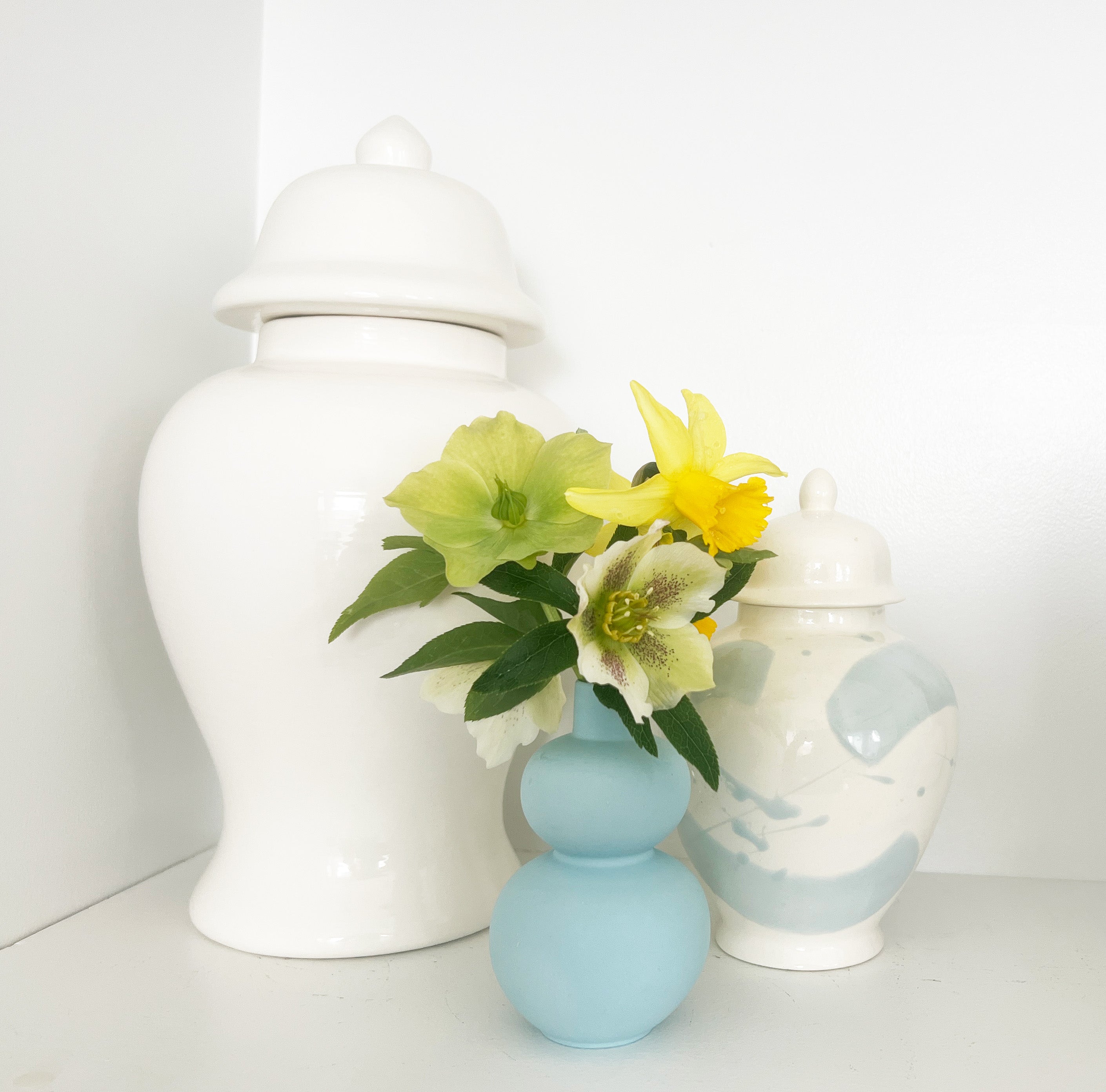 Handmade Paper Mâché & Clay Potted Tall Hyacinth with Bow – White