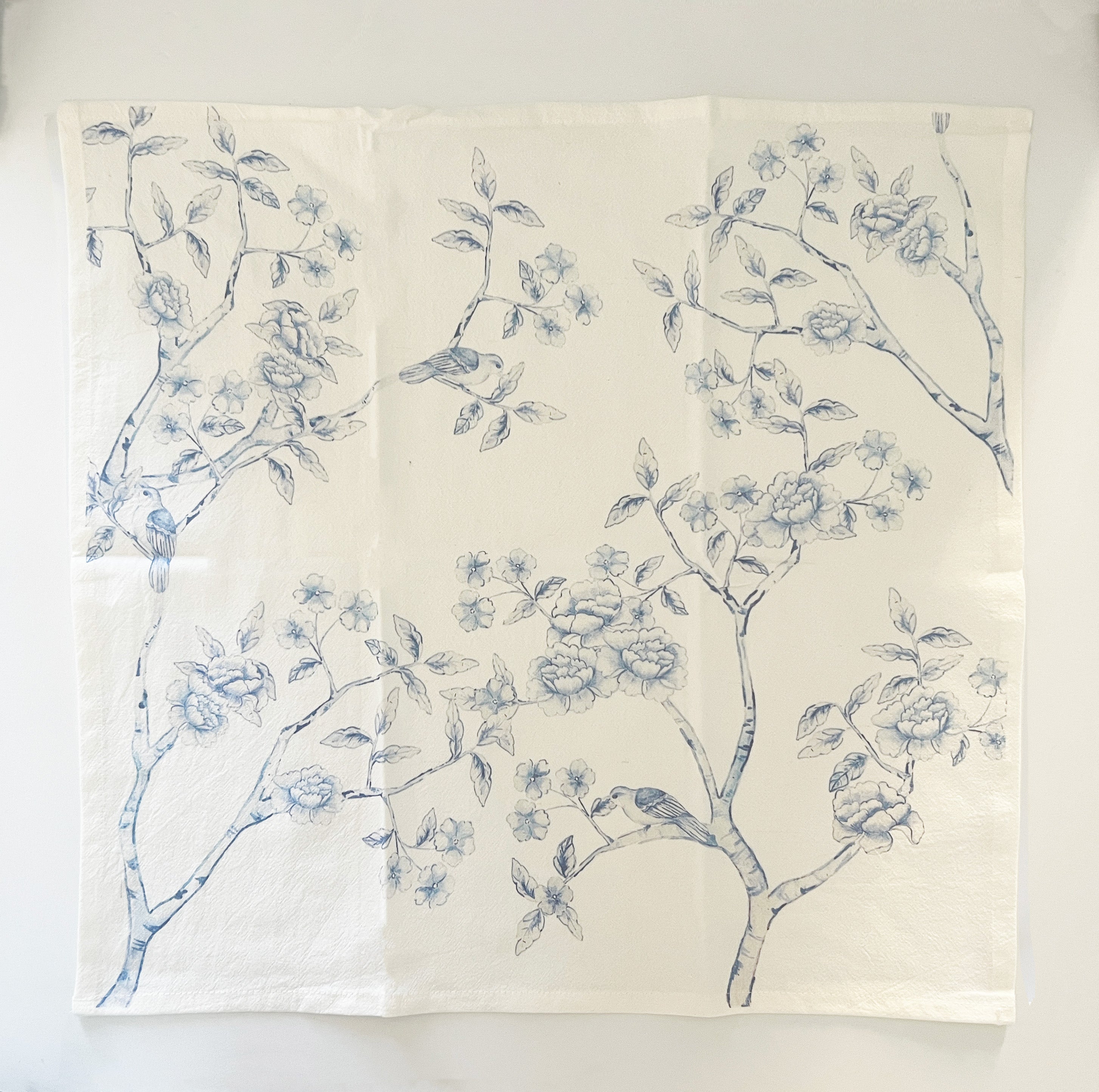 🫖 Blue & White Chinoiserie Tea Towel – A 100% cotton flour sack towel, hand-painted in a timeless blue and white chinoiserie pattern — soft, absorbent, and beautiful enough to display.