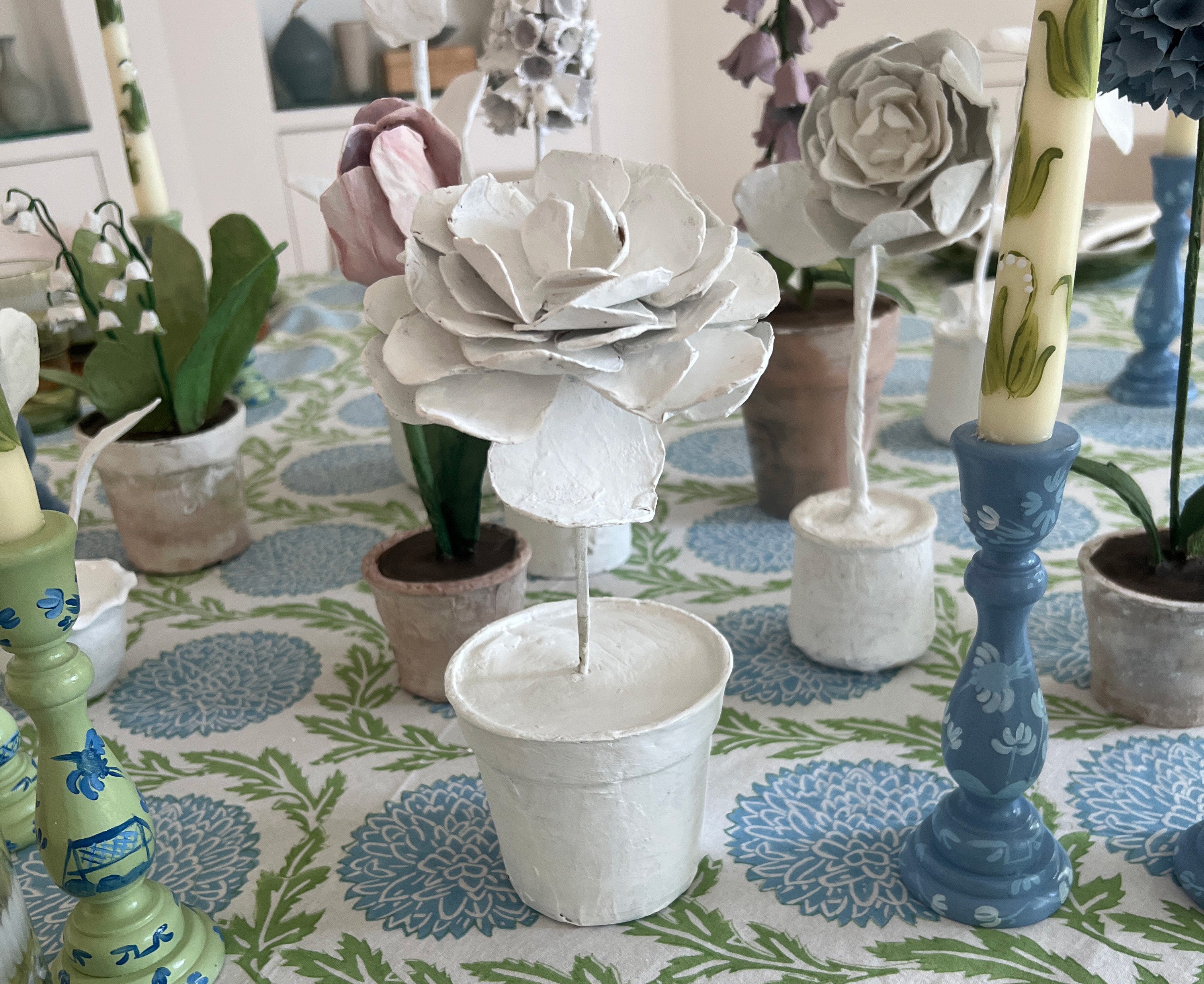 Handmade Paper Mâché & Clay Potted Large Rose Flower – White