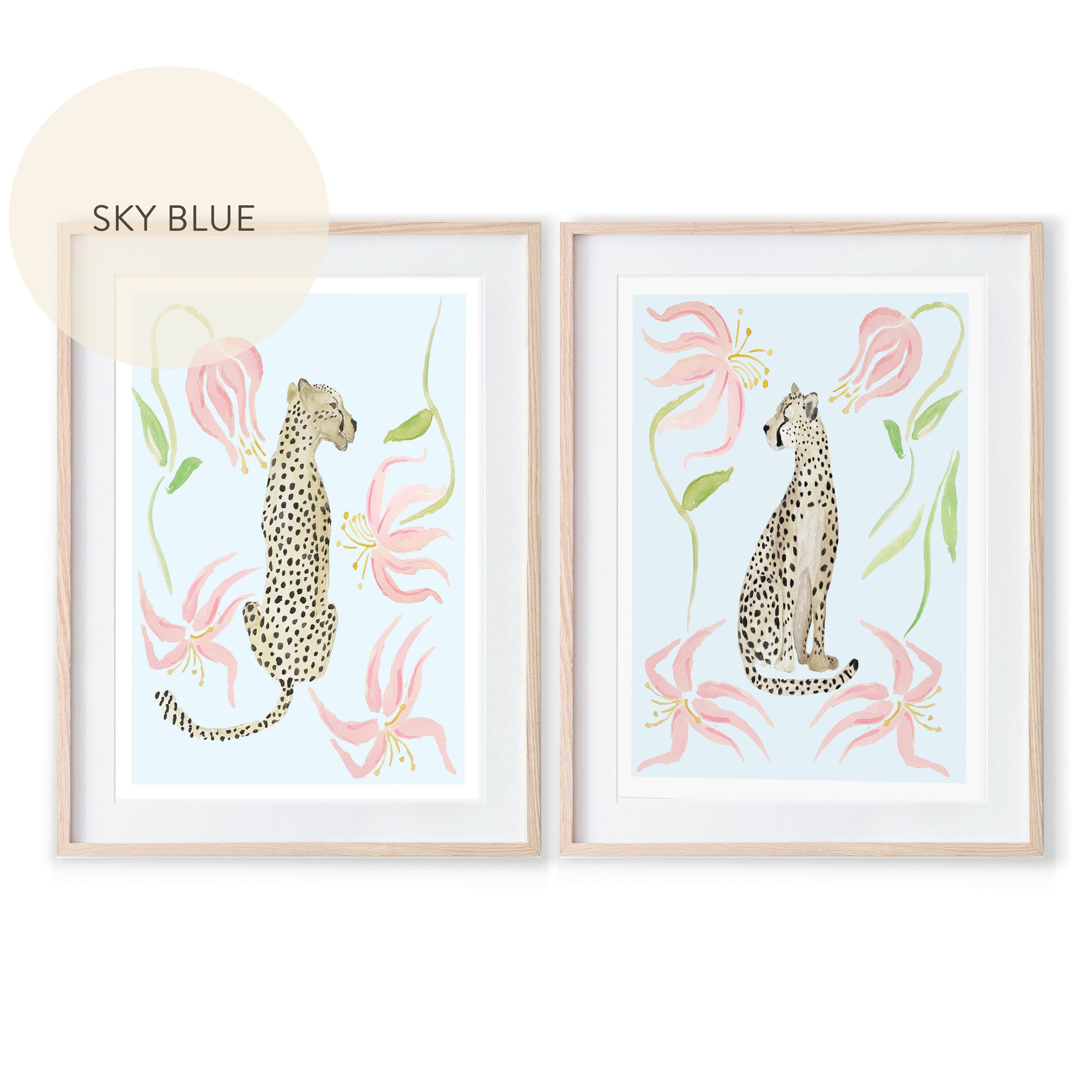 Digital or paper print of watercolor cheetah floral prints. Enjoy choosing a color that fits your home decor color and your style. This custom color wall print allows you to decide on the color you like. Great for putting together as part of a set of prints or as a single print in your home.
