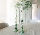 Green on Dark Green Ginori Style Floral Hand Painted candleholders