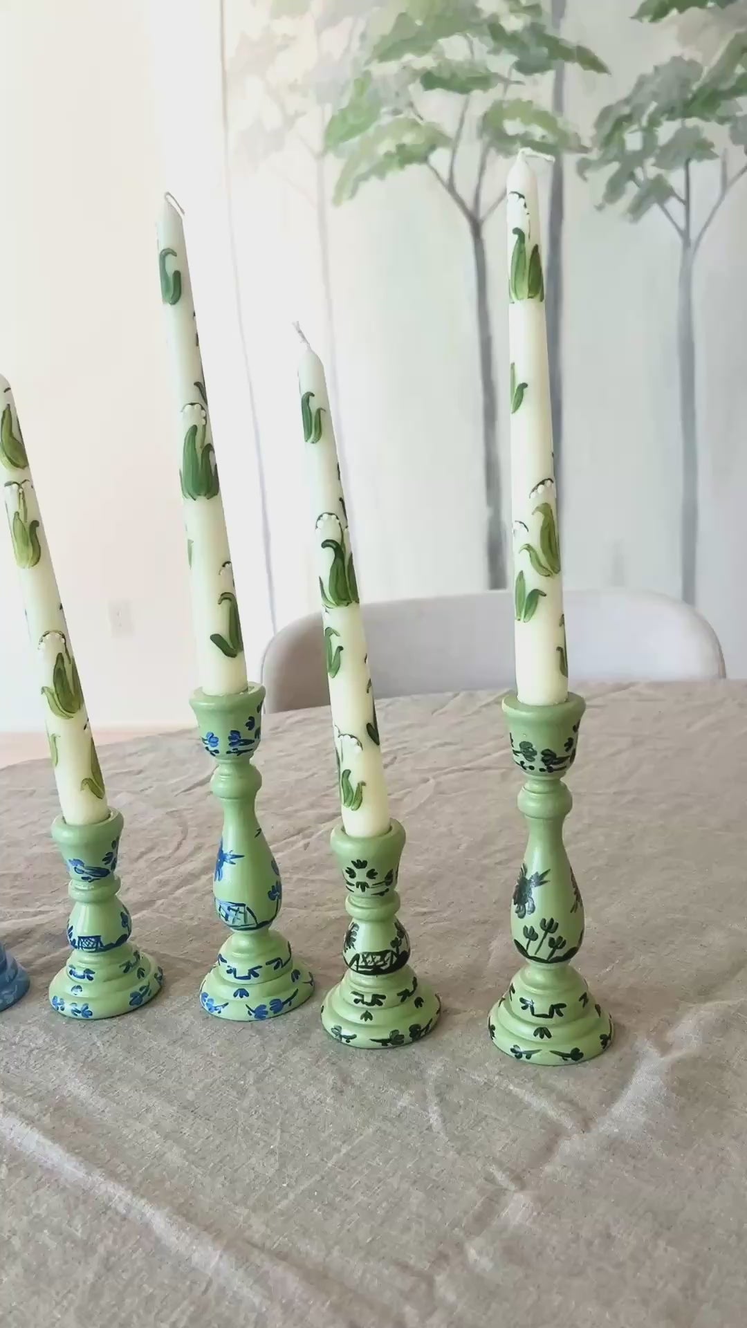 Lovely hand painted candleholders. Each candleholder includes artist signature from Sweet Pea + Whimsy and every candleholder is unique since it is hand painted. Perfect for a unique gift.