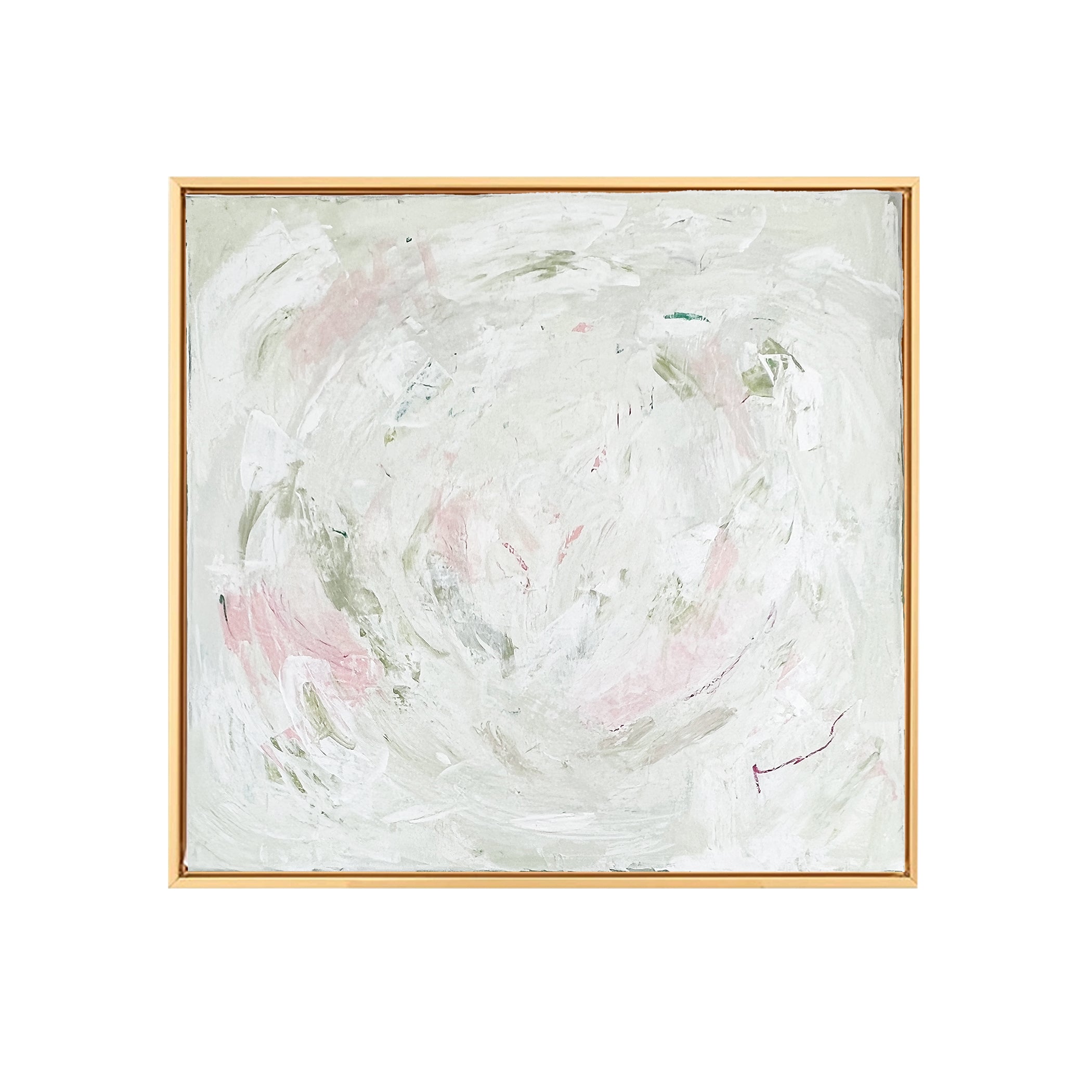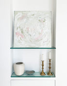 This abstract organic painting is the perfect addition to any room in your home. The texture with shades of green and pink are sure to brighten up any space.