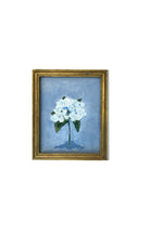 White Hydrangea Blue Background Painting II (8x10)| Modern Wall art | Art on repurposed Fine Art Paper
