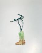 Buy ornament individually or as a set of 3 of the same color or as get all three cowboy boots in each of the colors (blue, pink and green)